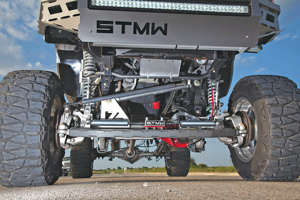Up next Embracing the Show-Season Spirit! Published on March 13, 2024 Author Aaron Gold Tags aem intake, air dog, Chevy, Diesel, diesel performance, Duramax, efilive, GM, sas, showtime metal works, solid axle swap, stmw, stndout, Share article Facebook 0 Twitter 0 Mail 0 ShowTime Metal Works! From Truck Enthusiasts to Industry Leaders in Suspension and Bumpers Like many businesses in the diesel industry, ShowTime Metal Works started out as a hobby. Brandon and Dustin Naivar were two brothers out of Taylor, Texas, who had a lifetime passion for lifted trucks. “We had a couple of half-ton Chevys and we would try to get them taller and bigger and stronger,” says Brandon. “If it won’t hold up to 40-inch tires, we’re not interested in it.” The Naivars quickly found that the bolt-on suspension kits they were buying didn’t deliver the performance they were looking for. The brothers grew up around metal fabrication and are both certified welders, so instead of spending more money on suspension parts, they invested in fabrication equipment and began building their own.Subscribe Our Weekly Newsletter The Chevy’s 6.6-liter Duramax is enhanced with an AEM cold air intake, EFILive tuner and Air Dog 2 lift pump. “We decided the only way to achieve our goals was to build the trucks ourselves,” Brandon says. The Naivar brothers’ creations took several best-in-show and best-engineered suspension awards. Soon they started doing weekend work on other people’s trucks, and before long ShowTime Metal Works was born. The Naivars put a lot of work into the front suspension and steering gear to ensure the Silverado would steer accurately, even with a solid front axle and a 12-inch lift. “I like things to work right,” explains brother Brandon. Arched 10-inch springs from Atlas combined with 2-inch blocks give the truck its 12-inch lift, and Fox shocks provide 14-inch of travel. A PPE rear differential cover dresses up the painted axle. The bumper business started in much the same way as the suspension business. The brothers weren’t happy with what was out there, so they started making their own. Bumpers have now become a major portion of STMW’s business. This 2007 Silverado was built to show them off at SEMA, and Brandon now uses it as a daily driver. One of the first things to go was the independent front suspension. “We wanted a ¾-ton Duramax where you could get the front wheels off the ground, land it, and still be able to drive it home,” Brandon says. Evidence of the attention to detail can be seen in the front suspension. The Naivars planned to install a Dana Super 60 front axle out of a Ford Super Duty with a 12-inch lift and a custom long-arm four-link suspension. The goal was to make the steering as accurate as possible and to ensure that the custom-built driveshaft would run without binding. Brandon called on Transfer Case Express to supply a Ford transfer case custom-machined to bolt up to the Allison transmission—an expensive solution, but the result is that the driveshaft sits at the factory angle and doesn’t bind, even with the suspension at full droop. “I like things to work right,” Brandon explains. The Chevy rides on 22-inch American Force Evade FP8 wheels with Nitto Mud Grappler tires, while 2-inch spacers give the truck its aggressive stance, and the shocks are 12-inch coilovers from Fox. Under the hood, the Duramax has been upgraded with an AEM cold air intake, Air Dog 2 lift pump, EFILive tuner, and a 4-inch MBRP turbo-back straight exhaust finished with a 4-inch to 7-inch Pypes polished tip. Output is in the neighborhood of 625 horsepower and 925 lb-ft of torque. The detail on ShowTime Metal Works’ bumpers shows why they have become so popular. The four-link kit was custom-built by ShowTime Metal Works. The Naivars had a Ford transfer case custom-machined to fit the Allison transmission. It was an expensive upgrade, but the driveshaft sits at a factory angle and won’t bind at any suspension angle, from full compression to full extension. STMW got into the bumper business because they weren’t happy with the bumpers on the market. Bumpers now make up a major portion of their business. The twin light bars are from Rogue4 and the wire mesh grille is a custom job. The seats were reupholstered by Katzkin. Note the alligator-skin center section. Subtle graphics allow the detail work on the ShowTime Metal Works bumpers and suspension to be the focal point of the truck. For paint, the Naivar’s decided to keep the Silverado in its native Silver Birch, with subtle graphics on the doors, bed sides and tailgate. Keeping the truck in touch with the ground are 22-inch American Force Evade FP8 wheels and Nitto Mud Grappler tires (40-inch, of course). We like the less-is-more look of the truck, which highlights the outstanding metal fabrication work on STMW’s suspension and bumpers. The Naivar’s Chevy is a great showcase for ShowTime Metal Works’ components and a real testament to the art of truck building. DW Total 13 Shares Share 0 Tweet 0 Pin it 13 Share 0