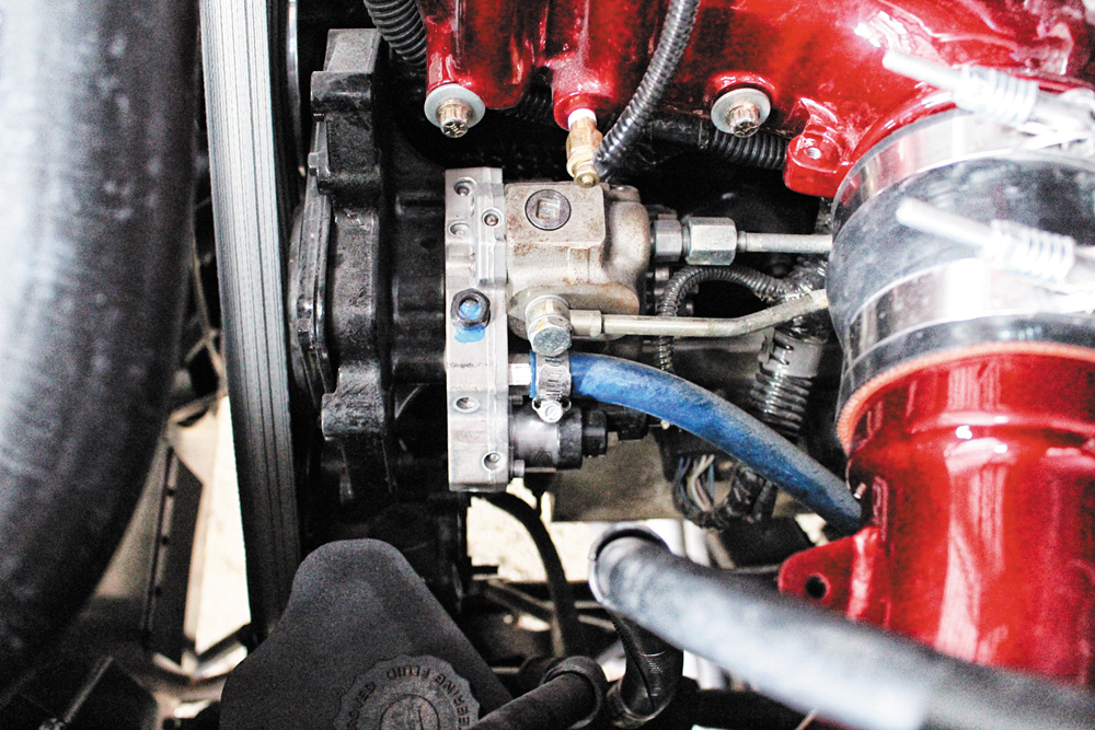 Up next $100K SECOND-GEN Published on July 14, 2023 Author Mike McGlothlin Tags 4x4 diesel trucks, Cummins, Diesel, Diesel Magazine, diesel performance, Dodge, Ram, Share article Facebook 0 Twitter 0 Mail 0 BUILDING A MONSTER A FIRE-RED 5.9L THAT WENT FROM 400HP TO 1,100HP OVERNIGHT When your plan to build an 800hp daily driver balloons into an all-out engine build, compound turbos and enough fuel for 1,100-rwhp, you end up with a third-gen menace on wheels like the one Marty Selvidge owns. Long a fan of Cummins-powered Dodges, Marty decided he wanted to amplify the power of his ’07 Quad Cab a couple years ago. After teaming up with Dermody Diesel Performance, a shop that’s known for building highly competitive pulling trucks, Marty’s Dodge was soon transformed from mild to wild. As the outline for the build evolved, Marty didn’t have a hard time convincing the folks at Dermody why he needed more power than he originally thought. After all, everyone knows you can never have enough. EVOLVING PLANS With Marty’s power goal expanding virtually every time he spoke with Dermody, both parties decided to pull out all the stops and build a 5.9L that could handle anything thrown at it. As a welding inspector by trade (specifically the welds made on armor plating used in the U.S. military), it came natural for Marty to want the engine reinforced as much as possible. Seeing machining time at RCD Performance and Wagler Competition Products, both the block and head were cut for fire-rings, the bores were torque-plate honed, and the head was extensively ported. The factory 5.9L crank is secured by way of an Industrial Injection gorilla girdle and ARP main studs, the rods are HD beam, forgedsteel units from Wagler, and the standard bore, Monotherm pistons came from Mahle.Subscribe Our Weekly Newsletter HIGH-FLOW HEAD Matching the hot street cam from Hamilton, the head was opened up considerably. CNC porting, oversize, hardened valve seats, threaded freeze plugs throughout, 103-lb valve springs, and Harland Sharp’s bronze bushed rockers all made the cut. The cast intake shelf was taken out of the equation in the mill, making way for a Big Hoss manifold from Banks. ARP Custom Age 625+ head studs keep the head glued to the block. With half-and-half protrusion for the fire-rings (50-percent in the block, 50-percent in the head), head gasket issues will be a non-issue even if triple-digit boost is regularly seen. Don’t be fooled by what you see here, this turbo’s got a friend. Mounted above an S466, the S480 shown employs a billet compressor and a 96mm turbine wheel in a T6 flanged, 1.32 A/R exhaust housing. The compound system was sourced from HSP Diesel, while the turbos were spec’d out by Dermody Diesel Performance. At full song, the S400’s join forces to make more than 80 psi of boost. S466 OVER S480 Being that the fire-ringed and well-fortified 5.9L would be a great candidate for handling big boost, Marty had no reservations about running a compound turbo arrangement. Built by HSP Diesel, it’s based around the use of two S400’s, both of which conceal proprietary billet compressor wheels spec’d out by Dermody. An S480 with a 96mm turbine wheel and a 1.32 A/R T6 exhaust housing serves as the atmosphere turbo, while an S466 equipped with an 87mm turbine and .91 A/R exhaust housing hangs off a BD Diesel manifold. The twice-compressed intake air travels through a Mishimoto intercooler before being forced through the Big Hoss manifold, and ultimately into the head. S&S FUELED Substantial fuel was brought to the table by pairing a set of S&S Diesel Motorsport 200-percent over injectors with one of the company’s 14mm CP3’s. The stroker pump has no problem supplying the sizeable, late 5.9L injectors with 26,000-psi of rail and a 200-gph AirDog II-4G system has no issue maintaining adequate low-pressure fuel supply from the tank. With a tank-to-engine fueling combination this serious, topping the 1,000-rwhp mark shouldn’t be a problem for Marty’s Dodge. GOLDEN NUGGET Any time you spot a golden Chrysler automatic under a Dodge, you know the owner turned to Firepunk Diesel for a transmission built to handle big power. Opting for the biggest and baddest 48RE on the market, Marty pulled the trigger on Firepunk’s Competition Stage 3 version. The race-ready four-speed makes use of a billet stator, quad disc DPC torque converter, a Fat Shaft billet input shaft, Maraging 300 intermediate shaft, and a Fat Shaft billet output. Added clutches, steels, and machined pressure plates, a high-pressure valve body, PPE deep pan, and a Mishimoto transmission cooler highlight the rest of the 48RE’s mods. A WHOLE NEW ANIMAL Believe it or not, Marty originally bought his third-gen so he could have four fully independent doors (his ’01 Quad Cab was chugging along just fine, but of course wasn’t a crew cab). However, after realizing the common-rail 5.9L platform could be made to make four-digit power while remaining durable, he decided to pursue the big horsepower build he’d always wanted. Now, he’s a long way from the days of old, when the Dodge was bone-stock aside from a Bullydog Power Pup. When Marty picks up his truck after returning home from overseas, it’ll most likely be packing 700 more ponies than it did when he left it in the care of Dermody Diesel. He says he can’t wait to drive it. We don’t blame him one bit. The high-pressure turbo sports a billet compressor wheel with a 66mm inducer, BorgWarner’s 81/87mm turbine wheel, and a .91 A/R exhaust housing. It produces the lions share of boost in the compound setup, and mounts to a T4 exhaust manifold from BD Diesel Beneath the D&J Precision Machine billet-aluminum valve cover—which was engraved by RCD Performance for the engine builder, Dermody Diesel Performance—sits a race-ready 5.9L cylinder head. The 24-valve head was resurfaced, machined to accept fire-rings as well as thread-in style freeze plugs, and fitted with ov