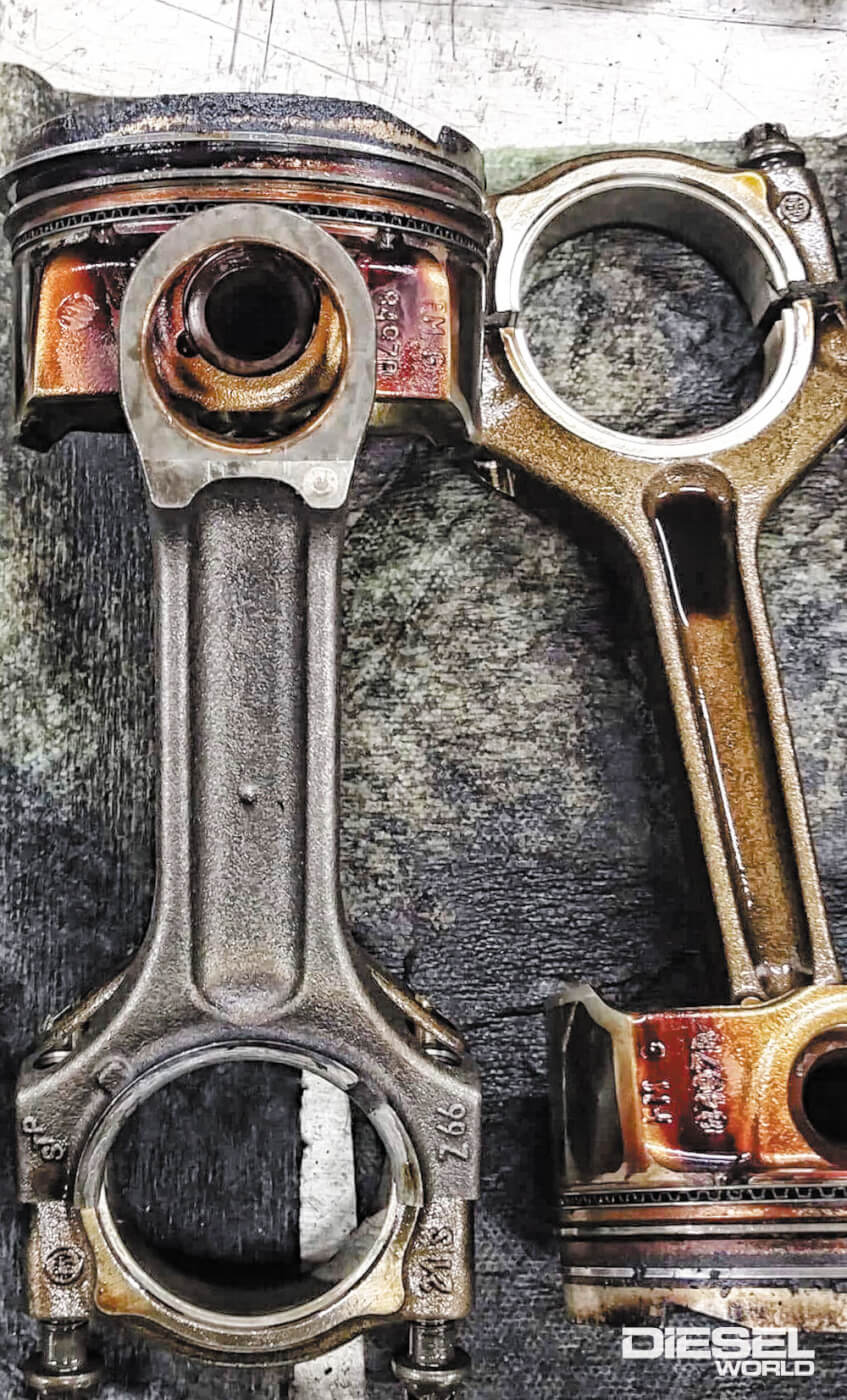 Up next Bomb Proof Published on July 06, 2021 Author Mike McGlothlin Share article Facebook 0 Twitter 0 Mail 0 BMW 3.0L I-6 M57: Small Displacement Diesel The Hidden Gem of Small Displacement Diesel BMW 3.0L I-6 M57 It’s an engine that is tough as nails, extremely efficient on fuel, and highly affordable at the present time, yet some of you never knew it existed—until now. It’s the 3.0L M57 inline-six diesel from BMW, and it’s arguably as chock-full of performance potential as a common-rail Cummins. When it debuted stateside back in 2008 (as an ’09 model available in the 335d), it packed a unique sequential turbo arrangement (compounds) and boasted 265 hp and 425 lb-ft of twist—numbers that would prove to be underrated. Tremendous drivability is on tap thanks to a responsive high-pressure turbo, and these sporty sedans can go from 0-to-60 mph in 5.7 seconds, as well as scoot through the quarter-mile in low-14-second intervals, stock. Capitalizing on the M57’s I-6 architecture and beefy internals, the engine’s true potential was eventually realized when the aftermarket got ahold of them. With emissions system shortcomings and a few other weak links addressed, the platform has proven capable of supporting north of 700 hp at the wheels without the need for bottom-end upgrades. To get the full scoop on what the M57 is capable of, we checked in with Santjer Performance, home of the world’s most powerful 335d, and S&S Diesel Motorsport, the common-rail experts who build larger piezo injectors for them. We quickly learned that for way less than $20,000 (including the purchase price of the car), you can make Hellcat-like power without even having to upgrade the factory transmission. And you can have your fun in a car that’s capable of nearly 40-mpg on the highway. If you’re in the market for a daily driver that sips fuel, rides comfortably, and has 12-second potential with nothing more than a tune, an ’09-’11 BMW 335d should be on your list. These cars are one of the best-kept secrets in the diesel industry. Right now, you can pick them up for $8,000 to $12,000 with reasonably low miles on them and instantly make your commute to work more entertaining or your road trips more economical. Beneath the composite intake, the BMW M57 engine in this ’09 BMW 335d conceals an aluminum block and head (earlier versions of the M57 used a cast-iron block). Within the crankcase, you’ll find a forged-steel crankshaft, secured by 2-bolt main caps. The rods are forged-steel and the pistons are cast-aluminum pieces with steel ring lands. The beam size of the M57’s factory forged-steel connecting rod is impressive, and helps explain why these engines can withstand 1,000 lb-ft of torque at the wheels. Here, it’s being compared side-by-side with a rod out of the BMW N54, a twin-turbo, aluminum block and head inline-six gasoline engine that turned out 402 hp and 398 lb-ft of torque in its most potent factory form. A 3.31-inch bore and a 3.54-inch stroke provide for a total displacement of 182.6 cubic inches (or 3.0L). That’s roughly half the size of the 5.9L Cummins and less than half the displacement of the 6.7L Cummins we celebrate so much in the diesel industry. Despite being half (or less than half) the size of those I-6 power plants, pound-for-pound the M57 produced more power. The ’09 version of the M57 that came in the 335d was rated at 265 hp at 4,200 rpm and 425 lb-ft of torque at 1,750 rpm. However, baseline chassis dyno testing would prove those numbers to be considerably underrated (they are achievable at the wheels). Unlike most overhead cam diesels you come across, they are chain driven rather than belt-driven in the M57. The cylinder head features four valves per cylinder, and relies on four head bolts per cylinder (with sharing) to fasten the head to the block. While we in the truck world are used to seeing six head bolts per cylinder, in the BMW’s case the lower fastener count does not affect its durability (more on that later). It’s unlike any compound arrangement you’ve likely seen before, but the factory sequential turbo system on the M57 hangs both turbochargers from the exhaust manifold. Internal bypass valves limit flow to one turbo or the other at the appropriate time. To get things moving, the low-pressure charger, a BorgWarner K26, sees nearly zero exhaust flow so that the high-pressure unit, a BorgWarner K39, can bring everything to life quickly. At higher rpm, a bypass valve diverts flow to the low-pressure unit without cutting the high-pressure turbo out of the loop completely (the high-pressure charger remains operating at or near 100-percent). The low-pressure charger is also wastegated to avoid possible overspeed. Although the factory hardware is stout on the M57 engine, its parts do have their limits. Throughout the past five years, Matt Santjer of Santjer Performance Development has bent plenty of connecting rods and melted a few pistons while testing the limits of the M57 platform—but as a result he now knows what parameters need to remain in check in order to keep a factory M57 alive. “If we really pushed it down low we could make 1,500 lb-ft, but it might come apart,” he told us. “So we try to keep torque in check.” While 1,500 lb-ft of torque might be out of the question for the M57, Santjer’s relentless testing of the 3.0L BMW has shown that he can get away with running 600 to 700 hp at the wheels and 1,000 lb-ft on the stock bottom end without issue. “Now that we’ve gathered so much data, we’re more comfortable with what we can get away with,” he said. Despite having just four head bolts per cylinder (14 total), Santjer Performance Development has proven that the factory head bolts can keep the head gasket alive at 75-psi of boost. The folks at Santjer believe it has more to do with the bolts’ length and their engagement in the block than their 12mm diameter. After all, the head bolts extend almost to the mains. 