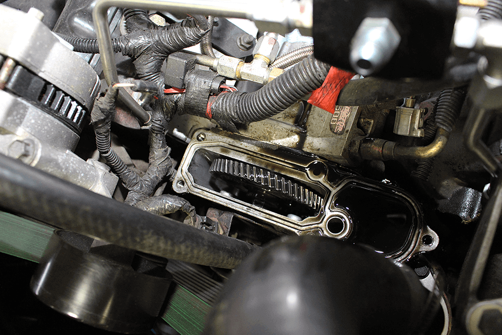 Up next Full Race Published on May 14, 2019 Author Mike McGlothlin Tags 7.3L, power stroke, Share article Facebook 0 Twitter 0 Mail 0 GEN3 The Last HPOP Your 7.3L Will Ever Need It’s no secret that chasing horsepower with a 7.3L Power Stroke calls for big injectors, and thanks to modern aftermarket HEUI injector technology substantial gains can be had without breaking the bank. However, every factory injection system has its limits—and the 7.3L’s is no different. Once you venture beyond the 550-rwhp range (or, as a general rule of thumb, go larger than a 250cc injector), you run the risk of the stock high-pressure oil pump not being able to keep up. And if you’re unable to maintain high-pressure oil volume being delivered to the injectors, you’ll never realize the full potential of a big set of sticks. To remedy this situation and fully enjoy your truck, you’ll either need to add a higher volume HPOP or run dual pumps. After being bitten by the performance bug (and with a 5.9L common-rail Dodge at his disposal for daily driving and towing duties), Hastings Foote decided to turn his ’97 F-250 into a play toy. Readying the 140,000-mile, stock bottom end 7.3L Power Stroke for more power called for ARP head studs, Irate Diesel Performance competition valve springs and Smith Brothers chromoly pushrods. Then, with a set of 350/200 hybrid injectors on order, he knew it was time to step up to a higher volume high-pressure oil pump, hence the reason for this article. In preparation for the big injectors, the engine was saddled with a complete T4 turbo mounting kit from Irate Diesel Performance and a BorgWarner S471. Equipped with a cast 71/100mm compressor wheel and the common 74/83mm turbine wheel, the S471 was also spec’d with a 1.10 A/R exhaust housing—the second largest available—for optimum high rpm flow (i.e., peak horsepower potential). A steady 65-70-psi diet of fuel supply makes it to the injectors thanks to a competition fuel system from Irate Diesel Performance. The compact, race-ready package incorporates a Fuelab Prodigy pump, -8 fuel line from the tank to the pump and the pump to the engine, and a regulated return system. To keep fuel free of air and ensure each cylinder sees adequate supply pressure, an Irate Diesel Performance regulated return system is employed. The system consists of 304 stainless steel hard lines, Parker fittings, a Fuelab adjustable pressure regulator, and it also deletes the factory fuel bowl from the lifter valley. Swamps Diesel’s Gen3 high-pressure oil pump assembly is made up of an industrial-grade Haldex hydraulic pump, a proprietary drive gear that works in conjunction with the factory pump’s drive gear, and a CNC-machined, billet-aluminum high-pressure oil reservoir. Each Gen3 unit is shipped 90 percent assembled and ready to install. Utilizing new mounting bolts, the Gen3 mounts directly above the factory location pump. The Gen3’s gear pump draws its oil from the reservoir and feeds it to a port at the rear of the factory high-pressure oil pump, which is common to the pump outlets, both cylinder heads, and the injection pressure regulator (IPR). Also note that no second IPR is required. A check valve on the gear pump inlet prevents the factory pump from back-feeding through it when starting the engine. In recent years, 300cc or larger injectors equipped with 200% over nozzles have proven capable of supporting 650 rwhp or more and provide great streetability with proper custom tuning, but (as stated) they require a larger displacement high-pressure oil pump or dual HPOPs to support them. With a set of 350cc injectors fitted and 200% nozzles on the way, ’97 F-250 owner Hastings Foote readied his highly modified 7.3L’s injection system for the increased high-pressure oil demand that was to follow. His pump of choice was the time-tested Gen3 unit from Swamps Diesel Performance. Of all the big injector 7.3L Power Strokes we come across, nearly 50 percent of them are running this pump. For an HPOP that works in conjunction with the factory pump, installs in just two hours, and supports any size injector on the market, it’s no wonder the Gen3 is so common in the 7.3L world. With the Gen3’s billet-aluminum, high-pressure oil reservoir replacing the factory reservoir completely, Swamps includes a fresh OEM gasket and new mounting hardware, and accommodates the factory oil pressure and oil temperature sending units. Finding fittings or bolts with their threads coated in paint means they’ve already been tightened or fully sealed prior to shipping (arrow). The process of installing the Gen3 began with the removal of the mounting bolts for the factory high-pressure oil pump reservoir (arrows). Swamps supplies all new reservoir mounting bolts with its Gen3 pump. Next, the inspection plug on the top of the factory high-pressure oil reservoir was removed (arrow) in order to suction out the oil. Note that if you opt to pull the reservoir without first extracting the oil you will have a slight mess on your hands, but nothing major. With the oil suctioned out of the factory high-pressure oil reservoir, the oil pressure sensor was disconnected, along with the engine oil temperature sending unit being pulled from the back of the reservoir. From there, the stock reservoir was lifted off of the high-pressure oil pump. Thanks to the Gen3 mounting above the factory location high-pressure oil pump, removing the stock high-pressure oil reservoir is as deep as you have to go during the install. Notice the badge on the existing pump: the reputable T500 from Terminator Engineering. Because the Irate Diesel Performance regulated return fuel system on the engine was originally intended for a single high-pressure oil pump application, its stainless steel lines had to be reworked to clear the Gen3. In addition, the fuel pressure regulator was disconnected from one of the return lines and swiveled out of the way for more working space during the insta