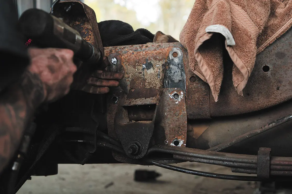 Up next Diesel Truck Tires Buying Guide Published on April 03, 2025 Author TUCKER HARRIS Tags Belltech, BellTech Suspension, rear lowering kit, Share article Facebook 0 Twitter 0 Mail 0 Dropping a Ram 2500 with Belltech Suspension An Iconic brand meets an iconic truck We’re happy to have you all back to see some more tech with us! This month we’re working with our friends over at Belltech Suspension to take our stock-form Ram 2500 and add a 4-inch rear shackle and hangar kit along with Belltech’s Street Performance shocks so we can get that low, aggressive stance we’re going for. From our experience with this kit, we’ll improve our driveshaft angle and the ride. Here you can see the finished look we are going to achieve. Three inches doesn’t sound like much, but it makes a massive difference in appearance. We will be installing Belltech Shackle and Hanger Kit, Part #6592. This will give us a 4-inch drop in the rear. Remove the rear lower shackle bolt and jack up the rearend to lift the spring out of the rear shackle mount. We opted to use the lift to bring our box completely off the frame so we had plenty of room to install this kit. Subscribe Our Weekly Newsletter Using a cutting wheel or similar tool, cut a slot through each rivet head on the front OEM spring hanger and remove the rivet heads with a chisel or air hammer. Before installing the new hangers, we test fit everything to make sure it all fits correctly. The new hanger simply bolts into place and the leaf spring can be reattached. After we got our shackle kit installed, we replaced our what look to be 30 year old shocks out. What a difference! How great does this truck look now? Reliable, dependable, and aggressive-looking! SOURCE BellTech Suspension Part #824 www.belltech.com 800-445-3767 Total 0 Shares Share 0 Tweet 0 Pin it 0 Share 0