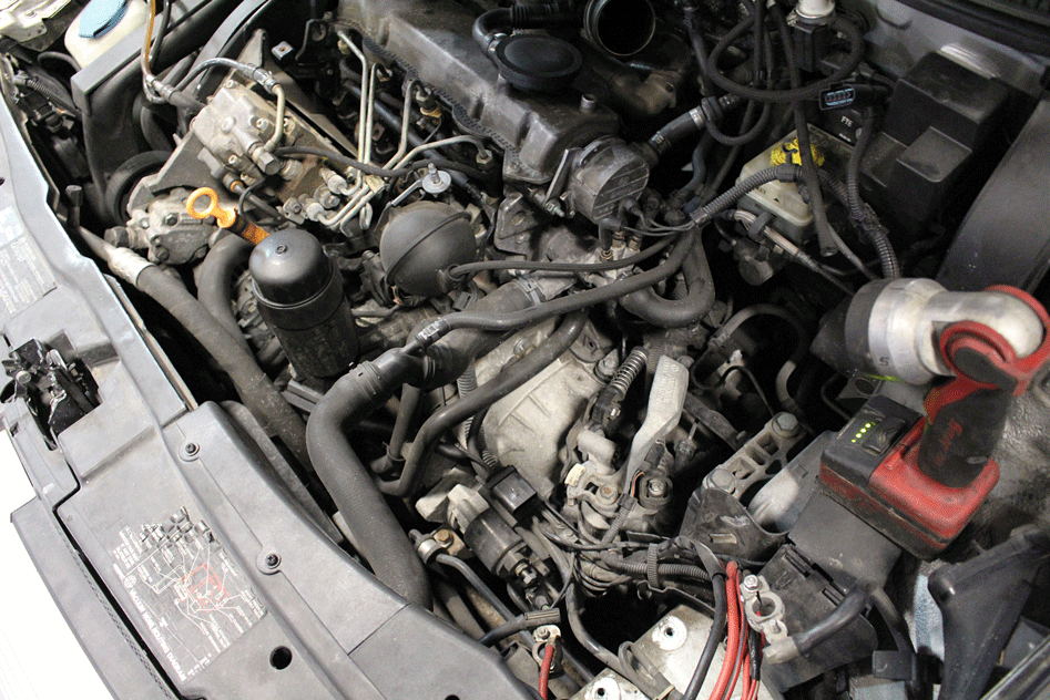 Up next Diesel News 5.14.18 Published on May 13, 2018 Author Mike McGlothlin Tags diesel world, Performance, southbend clutch, TDI, vw, Share article Facebook 0 Twitter 0 Mail 0 MORE POWER LESS SMOKE OUR ’03 JETTA GETS A NOZZLE UPGRADE AND A SOUTH BEND CLUTCH After picking up 33 horsepower in the last installment (December 2016), we’re back at it with our ’03 Jetta TDI project. We’re once again chasing horsepower, adding reliability, and even looking for an uptick in fuel economy. To reach our goals this time, we needed to pick the perfect injector upgrade and install all the right supporting modifications. For that, we contacted our friends at Kerma TDI and came up with a sound game plan. Two days later, a set of the company’s DLC 520 injectors arrived at our door and a revised ECU calibration was sitting in our inbox. Opting to tackle the clutch install fi rst, Jake Bosie of Flynn’s Shop got started by removing the items from the engine bay that would allow him plenty of access to the top of the 02J fi vespeed transmission. With the airbox, battery, and battery box out of the way, reaching the top bell housing bolts and disconnecting the shift linkages and linkage base was possible. After the top starter mounting bolt was removed, the slave cylinder was broken free from the transmission (shown). Once that was complete, the top driver-side motor mount bolts were loosened (the bottom fasteners were removed after the driver side CV axle was out of the way). We would eventually be replacing the factory driver-side mount with one of Kerma TDI’s Street Density 034 Motorsports units when everything went back together. Next, the car was hoisted into the air via two-post lift and the front wheels were removed, followed by the car’s aftermarket skid plate (i.e., panzer plate). Removal of these items made it possible to pull the starter (shown) and get to work removing the axle shafts. It’s not possible to drop the transmission without removing both axle shafts from the car. A triple-square socket is needed to break them loose and Bosie used a 17mm socket to hammer them out. Now is the opportune time to inspect (and even replace) the axle shafts, if required. A torn boot, which allows debris to enter the CV joint, is usually the culprit behind most failures. Complete CV joint assemblies and CV boot kits can be purchased online, at your local VW dealer, or through Kerma TDI. Ours checked out OK at this time. An engine hoist was employed to ease the process of pulling the transmission. The ability to tilt the driver side of the engine downward makes a world of difference when removing (and installing) the transmission. Once the hoist was in place, the dogbone motor mount was removed from under the car. Here you can see that the factory clutch still had some life left in it (left). While it’s possible to get by with a stock clutch and Kerma TDI’s DLC 520 injectors, its ability to handle regular inputs of 200 lb-ft of torque or more can kill it in relatively short order. For this reason, we opted to rule out the weak link altogether and go straight to the Stage 2 Daily Clutch from South Bend (right). More than doubling the holding power of the stock unit, the South Bend Stage 2 Daily Clutch utilizes an organic clutch disc material. A heavy-duty pressure plate provides vastly increased clamping force without sacrificing the stock pedal feel, and a 22-pound, solid-mass flywheel replaces the factory dual-mass unit. This clutch is well known for its quiet operation (no rattle), durability, and is conservatively rated to handle 325 lb-ft of torque. Bosie made quick work of installing the single-mass flywheel (and we’ll note that its bolt pattern only allows it to be installed one way). Each of the supplied flywheel bolts’ threads were hit with a coat of Loctite prior to being installed, and then the 10mm fasteners were torqued to 65 ft-lb. Using the alignment tool South Bend supplied with its clutch, the clutch disc and pressure plate were set in place behind the flywheel. Bosie then torqued all pressure plate bolts to 20 ft-lb. Turning his attention toward the transmission, Bosie pulled the release lever clip out of the factory release lever and then slid the release lever off the input shaft. Because the clutch release lever can bend, the ball pin can wear on the release lever, and the clip that holds the release lever to the ball pin can bend, we heeded Kerma TDI’s advice and replaced all three items. Once the ball pin, clip, release lever, and throw-out bearing were in place, the input shaft was hit with a liberal coating of grease, as this is where the throw-out bearing rides. Then the transmission was hoisted up (by hand) and bolted to the engine. With the transmission bellhousing bolts in place, the driver-side Street Density 034 Motorsports motor mount was installed. The Street Density 034 Motorsports mounts offer offer 25 percent more stiffness than the stock units, are fluid-free, and don’t increase vibrations felt inside the car. Once the new motor mount was secured, the shift linkages, starter, and CV axles were reinstalled. After lowering the car back down and removing the engine hoist, Bosie began replacing the factory injectors with the DLC 520 units from Kerma TDI. He got started by first breaking all injection lines loose and then removing them. To limit leakage, Bosie capped off the fuel ports in the injection pump. From there, all fuel return lines were pulled, followed by loosening each injector hold-down bolt (shown). We’ll note that Kerma TDI conveniently supplied all new return lines with its DLC 520 injectors. Kerma TDI set our injectors up as a Stage 1 version of its DLC 520 units and equipped them with brandnew Bosio nozzles. A unique feature on the DLC 520 injectors is that the needle and all of its sliding surfaces receive a diamond-like carbon (DLC) coating to reduce friction and increase the hydrodynamic support that the needle utilizes to rema