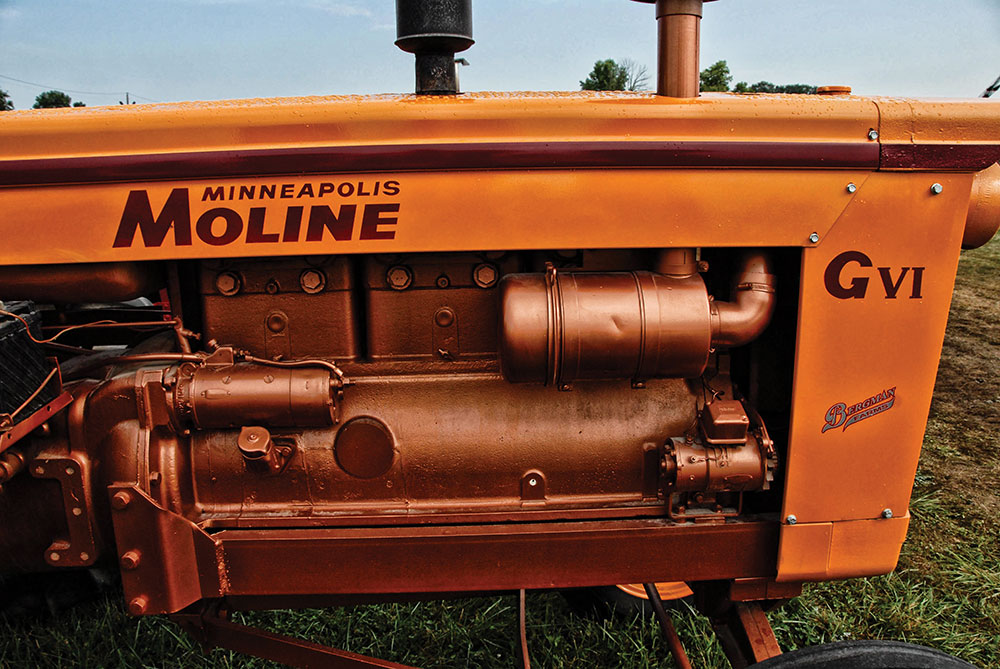 Up next JIMMY MACK IS BACK! Published on May 16, 2022 Author Jim Allen Share article Facebook 0 Twitter 0 Mail 0 EVOLUTION OF A HEAVYWEIGHT 1961 Minneapolis-Moline GVI At the dawn of the 1960s, Minneapolis-Moline (M-M) had an aging but well-regarded line of heavyweight tractors that had evolved from a 1938 model. That original model GT was a big wheatland style tractor with a 403 cubic inch four-cylinder gasser and it established itself as a player in the standard-tread tractor market. In 1942, as the United States went into full blown war mode, the GTA emerged with only a few updates. Not many were built as M-M production moved to war priority items. M-M tractors in this era had a military and jeep connection that crossed into agriculture and they relate to this story. Tall and upright is the stance of the G-Series tractors. That’s typical for a fixed tread, standard tractor built for the amber waves of grain in the northern Midwest USA and southern Canada. At a bit over 8,000 pounds, it was certainly a heavyweight in the era. It could carry another 4,000 pounds of ballast as needed. The two headlights were standard as were two rear-facing work lights. It was quite a while before M-M turned this basic platform into a rowcrop. This tractor belongs to the Bergman family and is one of several Minnie-Mo tractors in their extensive collection. It was shot at the Tri-State Engine and Tractor Show. In fact, for 2022, Minneapolis-Moline will be the featured tractor at the August 24-27, 2022, show in Portland, Indiana, so if you want to see more Prairie Gold tractors, be there or be square. SPECIAL THANKS TO BRIAN GONYEA Moline in Green In 1938, development of a M-M four-wheel drive artillery prime mover began. It was originally based on the U-Series tractors, which were smaller than the G-Series. The project soon morphed into something bigger and though it was ostensibly still a “U-Series” it was much more. Tests in 1939 showed the U-Series 283 cubic inch four-cylinder didn’t have the suds for an artillery tractor. By 1939, M-M had begun production of a new 425 cubic inch six-cylinder that made 70 horses and it was perfect for the prime mover project. With this new engine mated to the U-Series 4×4, the UTX artillery tractor was born. Subscribe Our Weekly Newsletter Six UTX were built for tests, four of which were used in 1940 at Camp Ripley, Minnesota, during tests with the Minnesota National Guard during their annual maneuvers. At this time, the UTX acquired the nickname “Jeep” because like the character Eugene-the-Jeep in the Popeye-the-Sailor comic strip, it could do almost anything. The UTX didn’t go into production and while the rest of this story is fascinating, it doesn’t involve diesels. We have marked the appearance of the 425 engine, so we move on. The Big Moline Evolves Following the war, that 425 six-cylinder needed a home. It found one in the GTB line for 1954, specifically in the GTB-D. The “D” for diesel… go figure! With a Lanova style combustion chamber and a Roosa-Master injection system added, the 425 gas six adapted well to diesel. A Lanova diesel version of the 293 cubic inch four had debuted in 1952 in the smaller UTS-D and marked the first production M-M diesel. The GTB-D evolved into the GBD for 1955 and the GVI replaced it for 1959 as an update. The working end of the GVI showing the standard swinging drawbar and optional PTO. A 3-point lift is not listed on the GVI options list. That is typical of a wheatland tractor by this time, though most manufacturers already had begun offering the option of a 3-point on this class of tractor. On the left, just below the platform, and above the step, is a toolbox. On the right is a rack for an optional hydraulic cylinder for use on various equipment that needed one. When switching implements, you removed the cylinder and hung it, uncoupled, hitched up to the new implement, attached the cylinder and off you go. So, yeah, the GVI was not a new tractor, rather it was a new presentation and evolution of the G-Series wheatland. You had the choice of a propane-fueled engine, or a diesel. The diesel and LPG produced almost identical outputs at Nebraska, in the realm of 78 horses on the PTO and 66-67 horsepower on the drawbar (without ballast). A PTO and swinging drawbar were standard but power steering was an option. The D425 was a Lanova cell diesel that went back to 1953. It was based on the gas 425 that debuted in 1938, sharing the same bore and stroke. The cylinders are parent bore, cast in pairs and bolted separately to the crankcase, with a separate head for each pair. There were only four main bearings but they were big bearings (2.91-inch diameter main and rod journals). The diesels had larger rod journals and wrist pins than the gas engines. It was a very big engine, so you could say, “Who needs front weights when you have an engine hanging out up there that weighs nearly 3,000 pounds.” This engine had a very long existence, running from 1938 to 1971, very near the end of the Minneapolis-Moline name. The GVI proved to be a good pattern for more evolution. Before it’s run ended in 1962, the G704 debuted… which was the same tractor with a front driving axle. At the end of 1962, the G705 (4×2) and G706 (4×4) took over and this time it was more than a designation change. They were upgraded with a bigger engine. By boring the 425 a whopping 3/8-inch, they created a 504 cubic inch Lanova diesel that could spin up to 1600 rpm and was rated at 101 PTO ponies. For the first time, M-M power went past the century mark. You can read about the G706 model on the Diesel World website at www.dieselworldmag.com/diesel-tractors/split-personality/. Typical of a wheatland style tractor, the operator’s station is entered from the rear and fully protected at the front from chaff and dirt by full fenders and other tin. It has a suspended seat that looks comfortable by 1959 standards. About the only “convenience” l