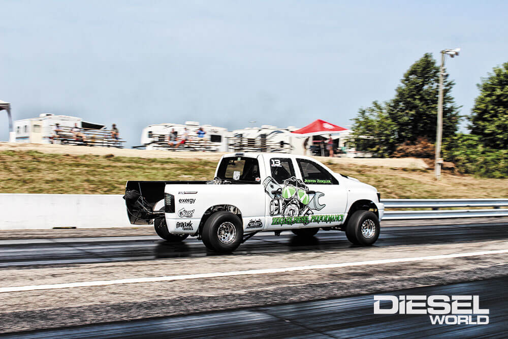Up next Chevy Cummins Crew Cab Published on October 18, 2021 Author Mike McGlothlin Share article Facebook 0 Twitter 0 Mail 0 Scheid Diesel Extravaganza Celebrating The Late-Summer Blockbuster’s 25th Anniversary In The Dirt, On The Drag Strip, and Aboard The Dyno Every year for the past quarter of a century, Scheid Diesel Service has played host to the can’t-miss event of the summer. It started as a TDR rally in Effingham, Illinois, expanded to all makes of trucks and migrated to Terre Haute, Indiana in 2000 (where it ballooned in size and popularity), and then relocated south to Lyons, Indiana in 2020. This year, hundreds of pullers, dozens of drag racers, and thousands of spectators flocked to Wagler Motorsports Park the weekend of August 27-28 to be part of the 25th running of the Scheid Diesel Extravaganza. It was hot and humid, but the action was nonstop and the caliber of competition was the highest it’s ever been. Out on the clay pulling surface, everything from Pro Street to Super Stock trucks were hooked to the sled, along with the wheels-up, Pro Stock tractors. And as is always the case, a huge turnout of Limited Pro Stock and Pro Street trucks called for matinee qualifying sessions before each nighttime show. Just over a football field away from the action in the dirt, Outlaw Diesel Super Series drag racing was lighting up the eighth-mile track. There, fans were treated to two new world records and some of the best index racing you’ll find anywhere. Other attractions included Pearce’s Diesel Doctor dyno, the annual show ‘n shine competition, and a sizable vendor’s midway. After taking in all the action at SDX 25, it’s easy to see why one of the diesel industry’s longest-running events is still one of its best.Subscribe Our Weekly Newsletter Rumor has it that C.W. Cartmell’s Limited Pro Stock truck conceals one of the highest horsepower Cummins power plants to leave Haisley Machine’s facility this year. And judging by the kind of year Cartmell is having in his “Most Hated” second-gen Dodge, that rumor just might be true. On both nights (not to mention qualifying), Cartmell ran away with the lead in the 3.0 smooth bore category. Things got interesting on Friday night when, incredibly, after ripping the draw bar off of the frame rails during Friday night’s rough track conditions, he was able to get things repaired, re-hook, and take the win. It was a solid weekend of work for Andrew Grove and his second-gen coined Bad Timing. He won the Pro Stock class on Friday with a 304.46-foot pull, finishing just ahead of Curt Haisley in the revered Off Constantly Dodge. The following night, Andrew would place fourth in a tighter, tougher, and bigger 19-truck field. David Large put it all together when it was time for 5.90 eliminations, beating out Adam Foltz’s well-oiled, P-pumped 24-valve machine. Won on the tree, David’s 5.92 ousted Foltz’s 5.91. In the final, David suffered a loss to Dustin Sterling and his hard-charging Duramax. However, leaving the Extravaganza, David had overtaken the ODSS season points lead with just two races remaining. It came as no surprise when Firepunk Diesel’s S10 grabbed the number one qualifier in Pro Mod, and its trap speeds were blazing. On both Friday and Saturday, the Hot Shot Secret-sponsored Chevy touched 176 mph through the eighth-mile—speeds that not even the dragsters in attendance would see. The quickest pass we saw driver Larson Miller make on the weekend was the Pro Mod’s 4.34 at 176 mph blast on Saturday. The Scheid Diesel Extravaganza is a tough place for a Limited Pro Stock or Pro Street diesel truck. If you want to pull with the big boys during the nighttime show, you have to make the cut during the daytime qualifying session—and the high noon track conditions are the complete opposite of what you experience in the evening. In 2021, there were 57 Limited Pro Stock rigs and 36 Pro Street trucks signed up to try their hand in qualifying. The top 20 Limited Pro’s were selected (10 from each lane), while only a dozen Pro Street trucks were allowed into the main event (six from each lane). This work of art was on display in Scheid Diesel’s vendor booth. It’s the latest creation—a billet-aluminum block and billet-aluminum 24-valve cylinder head—to come out of its new machine shop facility in Terre Haute. We’re sure this piece is more about functionality than looks, but boy does it look good! Expect this package to support well north of 3,000 hp, and do so in an ultra-reliable manner. David Large’s Extravaganza got off to a rough start. On Thursday, his 5.90 Index third-gen lunched the pinion in the 9-inch out back and he lost the driveshaft. Luckily, his friends Daniel Moon and Rod MacMaster helped him hunt down parts, Pro Mod driver Ben Shadday kicked in a new third member, and David was able to get everything back together in time for qualifying on Friday. During Q2, he earned the number 1 spot with a 5.918 at 120 mph. Although some racers struggled to find traction at the drag strip, Stainless Diesel had no issues getting its Pro Street Dodge to hook. On its first qualifying pass Friday morning, driver Johnny Gilbert put up a 4.86-second pass at 158.02 mph—a new Pro Street trap speed record. Johnny and the Stainless crew were also knocking on the door of the 4.82-second ET record, which they hold as well. Ultimately, Johnny took the win over RLC Motorsports’ Michael Dalton in the Pro Street final, putting up a 4.98 (at 152 mph) to Dalton’s 5.56. With big compounds feeding a SoCal 7.1L stroker motor, a BTS 4R100 transmission backing it up and full support from Truck Source Diesel, Dan Zelten’s GMC is probably capable of 5.50s in the eighth-mile. That was reason enough to sign up for a grudge race against fellow 5.90 Index competitor Brett Marcum, where both of them could find out exactly what their trucks could do when they aren’t forced to run the number. During Friday night’s gr