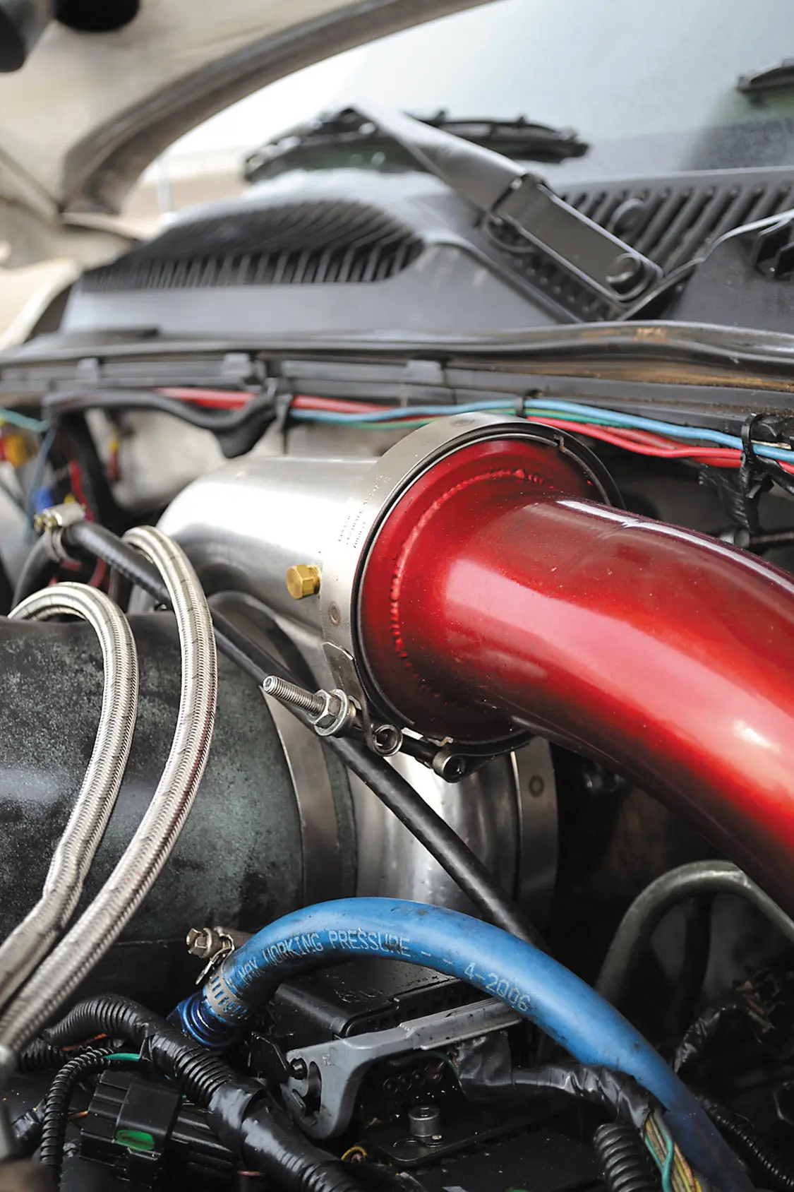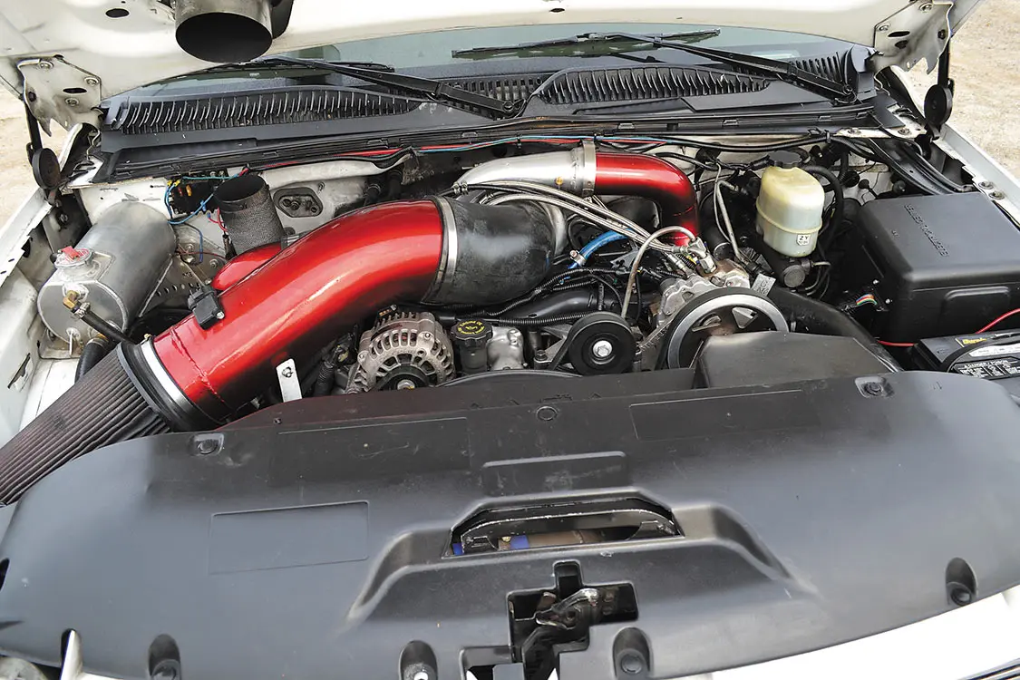 Up next 1958 Ford 841 Powermaster A Tractor with a Legacy Published on April 08, 2025 Author DW STAFF Tags 2002 Chevrolet 2500HD, Share article Facebook 0 Twitter 0 Mail 0 1,500HP of Pure Duramax Fury Smokin’ Max 2002 Chevrolet 2500HD Some people plan and build their trucks over a period of years; other people just come out of the gate storming. John Esteves is of the latter group, and his truck, Smokin’ Max, has been a visible part of Northern California sled pulling for at least a decade. John had always been into sled pulling, and his 2002 Chevrolet 2500HD quickly progressed past factory form and soon was turned into a street stormer/sled puller. John got his first transmission behind the big Duramax as early as 2003, so that should show how serious he’s been about performance right from the very beginning. The latest iteration of the Smokin’ Max is by far the most serious, as a SoCal Diesel-built 6.6L Duramax producing 1,500 horsepower at the flywheel was just dropped into the GM‘s engine bay in preparation for competing in the ultra tough 3.0-inch turbo class. “With sled pulling, it all starts with horsepower.”Subscribe Our Weekly Newsletter The engine that powers John’s 3.0-Class puller is a wild 6.6L Duramax that’s extremely stout. Built with ARP studs throughout, Carrillo rods, Mahle pistons, and half the SoCal Diesel catalog, it produced more than 1,500 horsepower on an engine dyno. Trucks competing in the 3.0 Class can only have a 3-inch (76.2mm) turbocharger, so we were surprised to learn that John normally runs a 88mm S400-based charger, that’s been configured for 3.0 Class rules. Exhaust exits the Duramax engine through a simple 4 to 6-inch hood stack, which makes the engine extremely loud during a pull, and provides a visual cue in case something goes awry mechanically. THE BOTTOM END With sled pulling, it all starts with horsepower, and plenty of it. John’s latest combination is based around a 6.6L Duramax block with a SoCal Diesel girdle, ARP main studs, and billet main caps. In addition to the bottom-end parts, the block was also O-ringed by SoCal Diesel for better head gasket sealing under high boost levels. For a rotating assembly, a Duramax crank swings a set of Carrillo connecting rods, dropped compression Mahle forged pistons, and a SoCal Diesel 9100-AF camshaft. Moving on up to the heads, John again stuck with his SoCal combination and went with Stage 2 heads that are ported, fitted with oversize valves, and beehive springs with titanium retainers. Even with the big turbo, an air filter is still something John runs to keep any debris from entering the engine. A large universal K&N filter gets the job done. With 72 psi of boost at full song, V-band style clamps are used wherever possible to minimize the chances of a blown or torn compressor discharge boot. AIR AND FUEL A lot of thought was needed when it came to the air and fuel systems, and here again, John only went with the best. The exhaust side starts with a set of ProFab up-pipes that feed a large frame S488-based turbo that has been necked down to compete in the 3.0 class. The turbo feeds a custom weight box-mounted air-to-water intercooler that his son John Jr. fabricated; exhaust exits through a 4-inch downpipe to a 6-inch hood stack. Fueling is equally impressive on John’s truck, with twin FASS 150-gph lift pumps sending fuel to a set of 12mm stroker CP3 pumps from Exergy Engineering. From there, the #2 diesel is sprayed through a set of 250% over injectors from Exergy and into the engine via tuning from SoCal Diesel. The end result of John’s engine efforts is impressive, as the Duramax made an even 1,500 horsepower on an engine dyno at 72 psi of boost and 1,600 degrees EGT. “The end result of John’s engine efforts is impressive, as the Duramax made an even 1,500 horsepower on an engine dyno at 72 psi of boost and 1,600 degrees EGT.” Many pullers have traction bars for the rear of the truck, but John added some up front as well to stiffen the frontend and help fight hopping. The chrome throughout the truck (especially noticeable in the suspension) was performed by Show Off Motorsports in Modesto, California. A Full Throttle Suspension (FTS) lift kit raises the frontend enough to clear the largest and widest of tires. Although the lift is originally designed for 10 inches, John runs it at 6 inches for better geometry. With minimal breakage over a 10-year period, he must be doing something right. Aggressive tires are usually best on loose West Coast tracks, so 325/60R18 Mickey Thompson Baja MTZs were mounted on 18×12-inch Weld Racing wheels to provide grip. POWER TRANSMISSION Just like the engine, the transmission in John’s truck has seen numerous upgrades and updates. The latest Allison 1000 is the work of Inglewood Transmissions, and it is filled with custom parts. A big turbo requires a loose converter to spool, so behind the engine is an Inglewood Transmissions 3,000 rpm stall converter that is connected to a group of upgraded input, intermediate, and output shafts. The valvebody and shifting strategy of the transmission is also Inglewood’s design, as is a custom clutch pack using Raybestos clutches with Koleene steels. For ultimate reliability, the C2 hub and P2 planetary have also been upgraded to much stronger units. It’s hard to miss the Chevy emblem weight box, but what you might not know is that there’s an intercooler in there. The water to air unit was fabricated up with the help of John’s son, John Jr., and was mounted as far forward as possible for traction when hooked to the sled. The rearend of the truck has been upgraded with a set of stock-sized chromoly axle shafts after a series of broken axles. The locker in the 3.73 rearend is so old that he doesn’t even remember whom he purchased it from. Safety is of the utmost importance in a puller such as this, as a whipping driveshaft can cause a lot of damage. A full circular safety loop that’s attach
