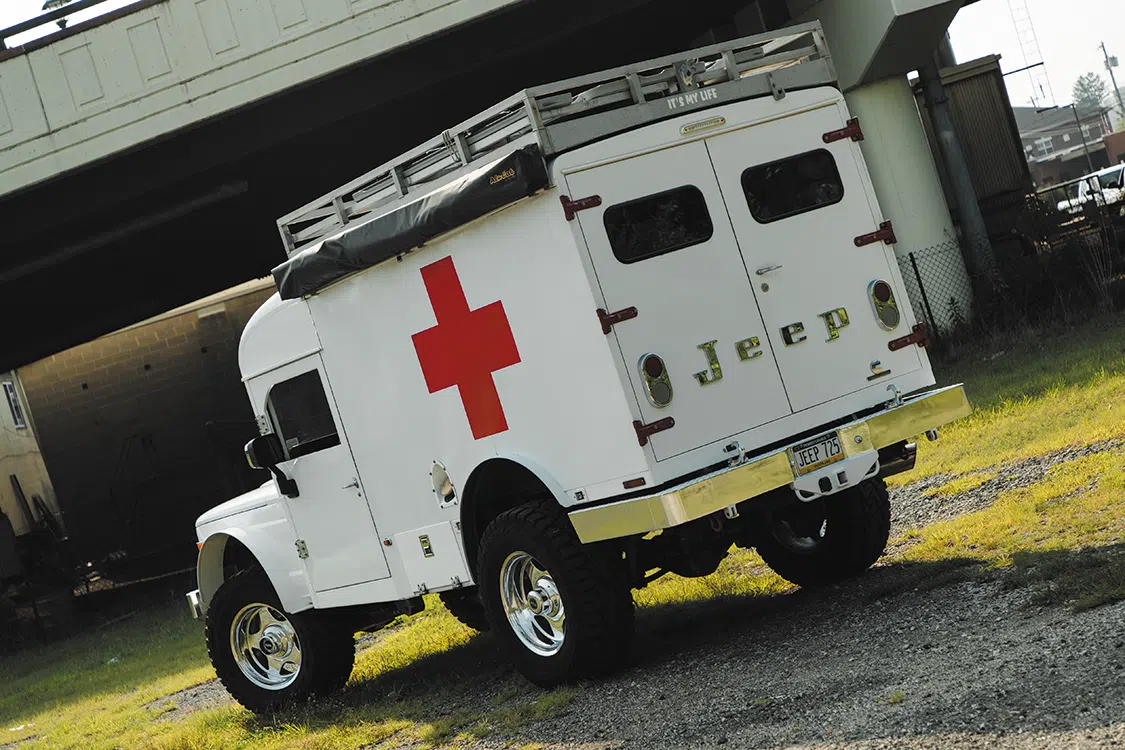 Up next Cummins-Swapped 1977 Chevy C20: A Masterpiece of Customization Published on August 29, 2024 Author LINDSEY FISHER Share article Facebook 0 Twitter 0 Mail 0 From Military Ambulance to Off-Road Adventure: The 1967 Jeep M725 Transformation 1967 Jeep M725 Military Ambulance Turned Off-Road Camping Rig Photos by Mach1Media Some of the best builds we’ve come across over the years have been those that have developed over time. While there’s certainly a lot to be said for a magnificent truck built in record time, we like to think of builds that have taken on many different chapters in their existence like a complex movie plot – always changing but enjoyed at every stage. Subscribe Our Weekly Newsletter Nothing could be more true for this 1967 Jeep M725 military ambulance converted into a proper off-road camping rig by its owner, Richard Brandi. Bought by Richard in 1997 with its original powertrain and running gear, the Jeep has been enjoyed in three very different variations over the years, from nearly stock, to the diesel-powered gem you see here. And thanks to Richard’s skills as a tool maker turned custom 4×4 performance shop owner with Brandi Performance, which he opened in 1986, every rendition has been a rite of passage of sorts, culminating with this fantastic version! Jeep Turned Diesel While Richard opted to upgrade the Jeep with a Chevy 400 after five years of driving it with its stock Kaiser 230.5ci inline-6, another upgrade was in order for more power and better fuel mileage after 15 more years of use. In 2017, Richard pulled the 400 and replaced it with a 1997 5.9L Cummins 12-valve engine. But that’s not where the upgrades stopped. Fitting the engine with a BD Diesel Super B turbocharger pushing 35psi, and a Banks Power TwinRam intake manifold, Richard gave his Jeep a considerable power increase to 450hp and 810 lb-ft of torque. The fuel system was also completely redone to include an AirDog lift pump, Bosch fuel injection pump with fuel plate and 4000 governor springs, Dynomite Diesel fuel injector, and a 1/2-inch fuel line leading from a 28-gallon steel fuel tank. Spent fuel from the engine is handled by a custom 4-inch stainless steel exhaust system featuring a BD Diesel RV exhaust manifold and a Diamond Eye Performance 4-inch muffler. Behind the 12-valve is a NV500 transmission with an 1-3/8-inch input shaft and fifth-gear upgrade built by Brandi Performance. The transmission also features a South Bend clutch and a 13-inch pressure plate. A Ford 271 transfer case with a Dodge 29-spline input shaft follows in line, leading to a custom Dana 70 axle in the front with a driver drop, 4.56 gears and an E-locker differential. The rear features a narrowed Dana 80 axle with 4.56 gears and Dana 70 single-wheel spindles and hubs, as well as a Detroit Truetrac locker. Both axles make use of Quigley 4×4 Vans 1480 U-joints. Planting the converted ambulance to the ground are 20×10-inch Centerline Outback wheels wrapped in 38/13.5R20 Toyo Open Country R/T tires. A Full Rebuild Swapping out the Chevy 400 for a Cummins and upgrading the drivetrain weren’t the only things Richard took on in regards to his Jeep starting in 2017. In fact, he opted to do a full overhaul of the retired military vehicle over a two-and-a-half-year time frame. Starting from the chassis up, Richard modified the frame from the firewall forward, using 2x5x3/16-inch tube. Modified Ford Super Duty coil spring towers were then built to fit custom frame rails while making sure they still accepted 2005 and up Super Duty front coil springs. The front end also makes use of Super Duty shocks. Out back, the Jeep was fitted with Chevy 1988 to 1998 1-ton, 2-1/2-inch wide springs, as well as Monroe shocks and Air Lift air bags. You’ll also find a 1- 1/2-inch sway bar in the rear. The steering system for the Jeep was upgraded to a crossover system, featuring a Saginaw steering box. Ford disc brakes with dual piston calipers, and 13-inch rotors were added both front and rear to provide the Jeep with ample stopping power, while the four-wheel disc brake system was further upgraded with a Ford hydroboost master cylinder and custom brake lines. Beyond Off-Road Friendly Built into an incredibly capable off-road rig, the Jeep has also been decked out with many modern amenities when it comes to both the body and the interior. Outside, Richard fitted the Jeep with a Gladiator hood and grille insert, Billet Specialties door handles, Hummer H2 mirrors, and halogen headlights. The Jeep also features an added Alu-Cab batwing awning for extra protection from the elements while camping. Custom components on the rig include one-off bumpers, door hinges and latches, LED taillights, and two on-board tool boxes, all built by Richard. The Jeep even features a custom observation platform on the roof of the rear box with a pop-up picnic table, also built by the owner. The entire thing is topped off with Axalta Imron white paint, with re-done red emergency cross emblems on the sides of the box as they were originally put on the Jeep back in the late 60s. Inside the cab, the Jeep features Grand Cherokee seats, along with a matching custom headliner, dash and dash inserts crafted by Brandi’s Performance. In front of the driver, you’ll find a Lecarra steering wheel attached to an Ididit tilt steering column. Auto Meter gauges were chosen for instrumentation, while a 1997 Ford truck center console was placed in between the two front seats for added comfort and storage. Other features of the renovated Jeep include power windows, air conditioning and a Ford Super Duty stereo system installed by Richard, which features a Pioneer 2000-watt amplifier and four 6×9-inch speakers. Richard also added a number of amenities to the camper portion of his rig, including a flip-down RCA 19-inch TV with DVD player, Espar diesel heater, a two-burner stove, and even a shower enclosure. While not quite modern “glamping,” we’d certainly enjoy ta