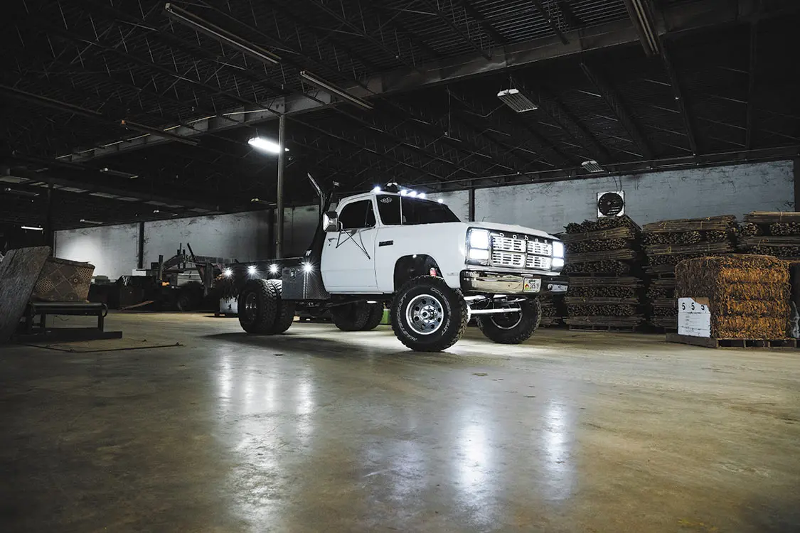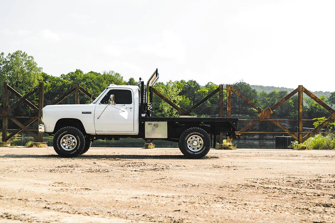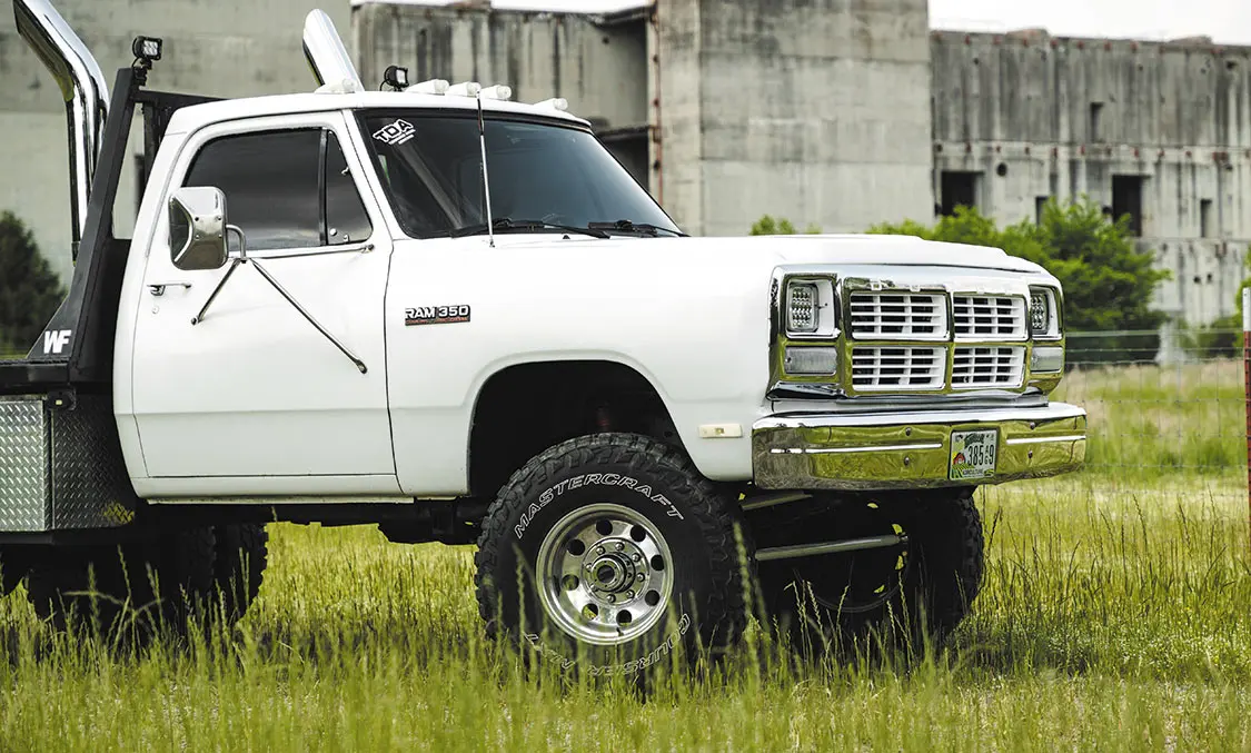 Up next Where Drivers Can Find the Best Diesel Prices Now Published on November 20, 2025 Author JOHN MATA JR Tags 1992 Dodge RAM W-350, Cummins, Share article Facebook 0 Twitter 0 Mail 0 This 1992 W-350 First Gen Dodge Was Built to Haul and Impress Jon Edgar Waller’s First-Gen Cummins Dream Dodge Photos by Mach1Media Every enthusiast has a grand vision of their own personal dream truck. For some of us, that image takes a lifetime to develop, not to mention a small fortune to shape into the ideal mold. Others have known the exact pickup they wanted from an early age though. It’s not often that the first truck we own turns into one that sticks around well into adulthood but when this happens, there is usually a very good story behind the build. Subscribe Our Weekly Newsletter We recently had the pleasure of meeting up with Jon Edgar Waller of Lebanon, Tennessee. Jon rolled up to the photoshoot in his 1992 Dodge Ram W-350 dually, which is his absolute pride and joy. It’s clear to see why he is so enamored with his truck. Jon has meticulously designed it to meet his standards when it comes to both work and play. Contrary to any misconceptions, his Dodge wasn’t set up like this after he was old enough to enter the job market. In fact, this is exactly the way he envisioned—even back when he was a kid. Dial-Up Dreams “Back when I was about 10 years old and was able to scroll the Internet, I began searching Google for images of ‘jacked up Dodge truck’—just like every other farm kid I knew,” Jon recalls. “After looking through as many photos as I could with our slow country Internet speed, I finally landed on a photo of a first-gen Dodge RAM, dark blue in color with white stripes and exhaust stacks. Little kid in me wanted that exact truck, and I spent many nights praying and preparing a speech to sway my parents into helping me get my hands on one.” “… I began searching Google for images of ‘jacked up Dodge truck’—just like every other farm kid I knew.” Yes, Jon was that dead set on finding the truck he wanted, but even after getting his parents’ approval to buy one, and tracking down a few locally, he soon felt the deflating experience of having them being sold out from under him one by one. It’s a feeling that’s enough to stifle one’s enthusiasm but Jon was about to land on a streak of luck. “My friend’s dad was looking to sell his old Dodge truck, and it ended up being perfect for me,” Jon adds. “I sold off the tractor my dad bought me to work with to put towards the $8,000 price. I have not stopped customizing it since the very first day the truck became mine (May 28, 2015).” “Eagle Alloys wheels wrapped in Mastercraft Courser MXT 315/75R16 tires give the truck dependable off-road capability, which is a requirement due to the line of work Jon is involved in.” High Hopes Jon has finished with school and is now self-employed as an excavation company owner/farmer/model builder—not a bad combination. Luckily, the truck he wanted as a kid is still as relevant as it was to him years ago. Not only is Jon still able to have fun with his Dodge, but he has banked on the utility of its flatbed to his advantage as a hardworking man. To satisfy both fun/work functions, the truck was lifted a total of 4 inches utilizing a full Skyjacker suspension package that includes leaf springs and shocks. Eagle Alloys wheels wrapped in Mastercraft Courser MXT 315/75R16 tires give the truck dependable off-road capability, which is a requirement due to the line of work Jon is involved in. Given this RAM was a former farm truck, there were plenty of repairs and alterations made to it in the past that didn’t exactly live up to his modern standards, however. “One of the sketchy ‘farm’ fixes that was made to it was the steering setup,” Jon admits. “The gear box was stuck in 2WD, and the severely undersized, homemade drag link was too scary to not replace. Dalton Lovejoy at Dudes Fab in Hartville, Ohio, was able to assist by putting together a crossover steering solution paired with a drop Pitman arm and new steering knuckle to help remedy the issue.” “When I was young, this truck gave me something to look forward to working on, and as an adult it has given me an opportunity to show off what I have invested in it.” Stacked One of the truck’s factory attributes that got Jon hooked on the RAM in the first place was the first-gen Cummins engine. Throughout the years of owning the truck, he has learned how to maintain and even customize that diesel powerplant with his own hands. The engine has been gradually built up over time and is currently in tip top condition. Mike Joseph of Patriot Diesel in Reno, Nevada, was asked to help source a few key performance components for the project. From the Gillett Diesel 63/64/12 turbo, milled head and rockers, Dynamite Diesel Power injectors, Diesel Auto Power three-piece intake manifold, towering dual exhaust stacks rising over the cab, and custom paint and pinstriping found all throughout the engine bay makes for well-rounded performance with a side of visual appeal with some awesome pinstriping by hatem graphics. A Bright Future To expand on the RAM’s outer façade, Jon whipped up a custom headache rack, and strung 40 individual rock lights from C4 Off Road across the truck. He stashed four of them on the grille, eight on the rack, eight spread throughout all wheelwells, eight around the flatbed, and 12 along the frame. There’s no mistaking his truck in broad daylight, let alone in the darkness of night. From front to back, the Dodge boasts an overall eye-catching burly build. “These first-gen Cummins trucks aren’t for everybody,” Jon shares of his personal experience. “For the most part, they are slow, ride rough and are normally rusted out, but they do appeal to many more dedicated enthusiasts other than me who can’t get enough of them. Even though my truck is looking and running great, I sti
