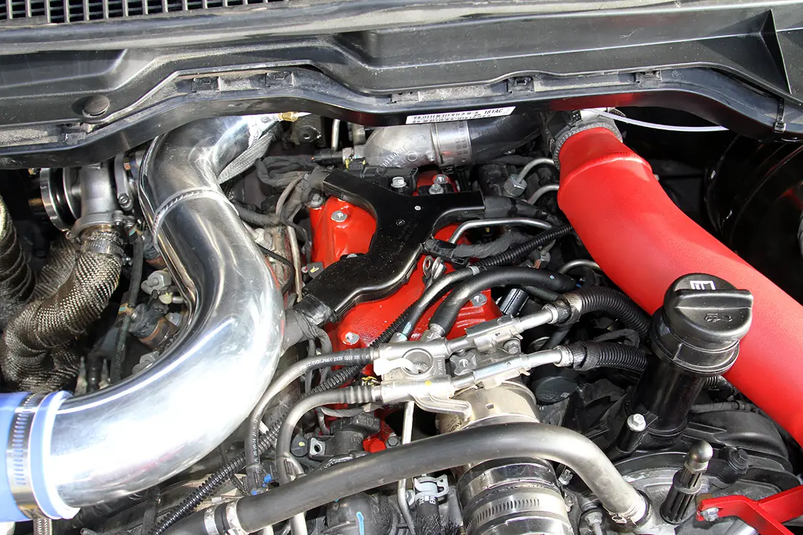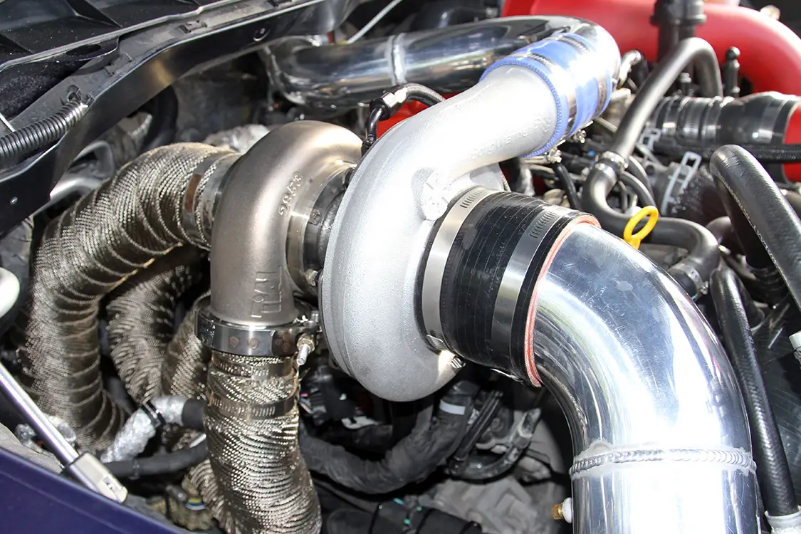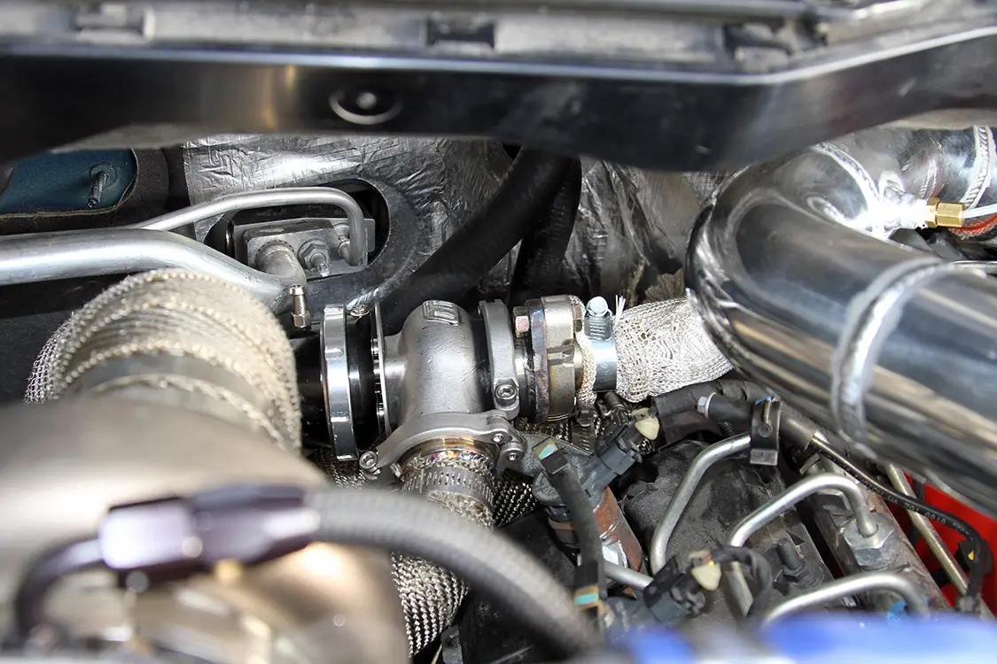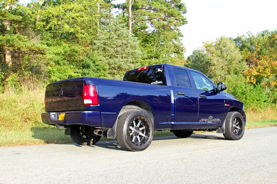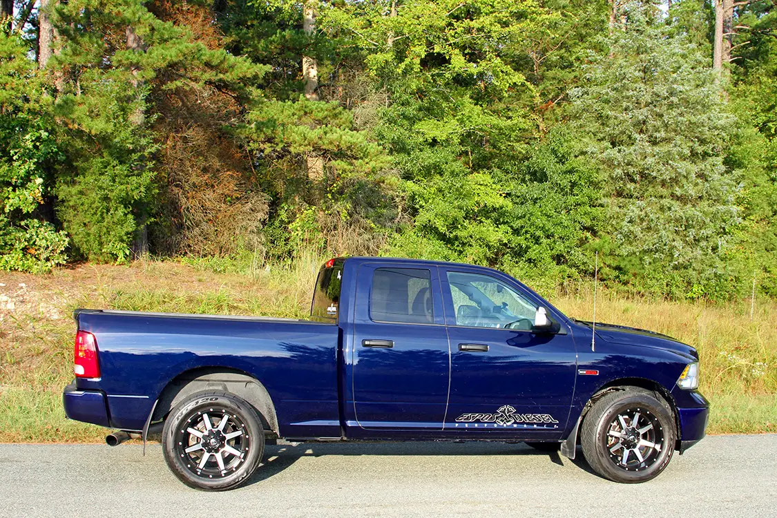 Up next The First Diesel Pickup Truck in History: Manufacturer, Engine, and Legacy Published on October 07, 2025 Author Chris Tobin Share article Facebook 0 Twitter 0 Mail 0 Diesel Engineering Redefined: Espos Diesel’s RamCharger Turbo System Ryan Esposito’s Compound Turbocharged Ram 1500 EcoDiesel Developing new products can be boring for engineers, pro- grammers and developers that are forced to sit in a lab to in- vent the latest mainstream widget. Fortunately, the performance diesel industry is a lot more hands on, allowing the men and women behind the scenes a chance to work, develop, and drive in the real world—not just in a lab. As the owner of Espos Diesel Performance in Plattsburg, New York, Ryan Esposito is the driving force behind developing new products that his shop will offer—the latest of which is a compound turbo kit called the Ram- Charger for the 2015 Ram 1500 EcoDiesel 1/2-ton truck. RYAN ESPOSITO’S 2015 RAM ECODIESEL IS A GREAT LOOKING TRUCK WITH AN EXTRA TURBO AND ABOUT 200 ADDITIONAL HORSEPOWER STUFFED UNDER THE HOOD! The Borg Warner S362 turbo charger is customized by the team at Suncoast with a billet compressor wheel and stainless-steel Tial turbine housing with a V-band outlet. The crew at Espos wraps the stainless-steel exhaust piping to keep the heat in the tubes and reduce underhood heat with the remote-mounted turbo. Popping the hood on Esposito’s EcoDiesel reveals the enhanced 3.0L V6 diesel en- gine. All eyes are immediately drawn to the extra turbo on the passenger side of the engine bay with the Espos “RamCharger” compound turbo kit. We caught up with Esposito when he brought his test mule 2015 Ram 1500 EcoDiesel down to Rudy’s Diesel event this fall in Julian, North Carolina. In addi- tion to running on the dyno and making a few passes down the drag strip, he had the truck on display in the Suncoast booth for attendees to check out. He also took time for us to take the truck off-site to shoot these photos and bring you the low- down on what we believe to be the first compound turbocharged 3.0L V6 EcoDiesel. Keep reading to find out more about this one-of-a-kind, 1/2-ton Ram truck.Subscribe Our Weekly Newsletter To get the compressed intake charge in and out of the intercooler with as little re- striction as possible, the RamCharger kit makes use of a set of aFe BladeRunner large-diameter intercooler tubes. Looking closely between the factory turbo and the Suncoast turbo, you’ll find a Turbosmart 40mm wastegate used to keep boost levels in a safe range for the 3.0L engine in stock form. Lifting the hood of a stock EcoDiesel Ram reveals a molded-plastic engine cover with a sea of black plastic and very little wow factor, but lifting the hood of Esposito’s Ram is an entirely different story. With the RamCharger compound turbo kit installed on the V6 engine, the plastic shroud is replaced with a much more desirable Suncoast-modified Borg Warner turbo and other associated bling. The heart of the kit is the custom S363 turbo that was enhanced by the team at Suncoast with a billet compressor wheel and Tial stainless-steel turbine housing. WITH THE RAMCHARGER COMPOUND TURBO KIT INSTALLED ON THE V6 ENGINE, THE PLASTIC SHROUD IS REPLACED WITH A MUCH MORE DESIRABLE SUNCOAST-MODIFIED BORG WARNER TURBO AND OTHER ASSOCIATED BLING. The factory intake manifold was replaced with a Banks Performance intake (red, under the engine harness) while the custom polished-aluminum cold pipe linking the turbos is easily spotted. Even after driving the truck over 800 miles from his shop in Plattsburgh, New York, to Julian, North Carolina, for the Rudy’s event in the fall, Esposito had no reservations to running the truck on the dyno—laying down nearly 400 horse- power in the process. Fresh air is drawn into the charger through an aFe Filters Pro Dry S air filter mounted low in the engine bay away from heat sources. It is connected to the inlet of the Suncoast turbo through an Espos- fabricated, polished-aluminum intake pipe. The compressed charge from the at- mosphere turbo is fed over to the inlet of the factory turbo through more custom-fabricated, polished-aluminum intake tub- ing. Output from the factory charger is fed over to the factory intercooler through a set of red aFe BladeRunner intercooler tubes that offer larger tubing and better airflow than the factory tubes. After re- turning from the intercooler through the cold side aFe tube, the pressurized charge is fed into the engine through a Banks Power intake manifold. The truck looks good from any angle with the rear bumper and tailgate emblem dechromed and painted to match. To carry tools and supplies in a secure location, he in- stalled a low profile diamond plate storage box in the bed. On the exhaust side of things, the spent gasses first flow into the factory tur- bine housing before being passed on to the Tial turbine housing inlet on the Sun- coast-modified S363 Borg Warner turbo. From there, the exhaust outlet is chan- neled to the rest of the exhaust system in- cluding Flo~Pro stainless-steel exhaust tubing used to fabricate the hot side of the turbo system and the MBRP exhaust system under the truck. The hot pipes under the hood are all wrapped in thermal header wrap to keep the temperature in the pipes rather than radiating out into the engine bay. To keep the boost levels in check and maintain the integrity of the stock 3.0L engine, Esposito relies on a 40mm Turbosmart wastegate plumbed into the exhaust feed with stainless-steel tubing. Peeking under the rear of the truck you can see the Firestone Work-Rite spring helpers as well as the MBRP exhaust system. Looking at the front side of the rear axle, you can see the lower control arms as well as the aluminum dri- veshaft and MBRP exhaust system. While simply bolting on the Ram- Charger compound turbo kit will provide an additional 100 or so horsepower to the wheels when compared to the stock 190 that Esposito saw when dyno testing his