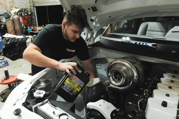 Up next Inside the Any Level Lift System for Super Duty Dualies Published on January 29, 2026 Author DW STAFF Share article Facebook 0 Twitter 0 Mail 0 Better Oil, Better Results: A Real-World Diesel Test AS SEEN IN OUR APRIL 2026 ISSUE – Buy Now! Switching Our Builds Over To The Best In The Biz! I you’ve ever owned any vehicle and done your own fluid changes, you’ll know that there are good choices and there are bad choices in the sense of engine oil. Price may go along with that idea, but what’s a couple bucks in the long run when it’s 8 to 15 thousand dollars to replace your engine once it kicks the bucket? Seeing that you care about your vehicles enough to do some research, let us introduce you to Amsoil products. Since 1972, Amsoil has been making awesome fluids for the automotive market, and it has kept its name and products in check since then. We’ve been running a different oil brand in our trucks for a few years until now and have always gotten that sooty, dirty black diesel oil in the bucket every 5 thousand miles. It was time to make a change. Besides the awesome presentation these bottles have, we have just made it through our break-in period on the new cam in Stock to Not after a fresh Amsoil Signature Series 15-40W synthetic diesel oil, and we are IMPRESSED! Subscribe Our Weekly Newsletter Even after 1,200 miles there is no crazy soot residue in the oil, and it’s nice and gold like it was when it came fresh out of the bottle. This is a breath of fresh air, seeing that we’ve thought our engine was somehow accelerating the oil wear with the previous brand we were using. Higher lubricity is going to make this old 12-valve so much happier, and you can tell by the sound of the engine and how it drives. Whether you’re daily driving your diesel or hitting the dyno competition this weekend, definitely do your truck a favor by getting the right Amsoil diesel oil for your rig! Total 0 Shares Share 0 Tweet 0 Pin it 0 Share 0