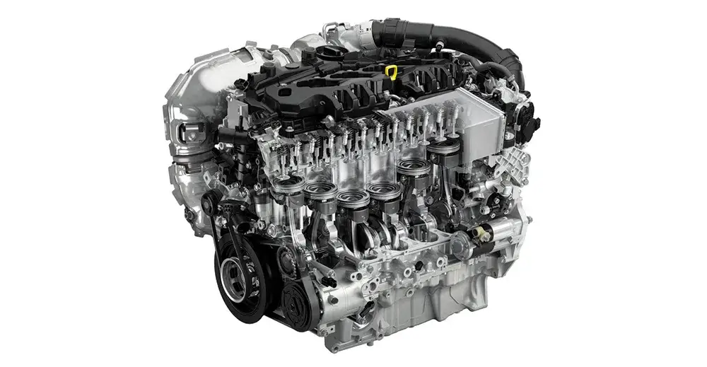 Up next Nate Wilson’s Diesel-Powered ’62 Lincoln: A Unique Blend of Power and Elegance Published on August 09, 2023 Author Mike McGlothlin Tags automotive, e-Skyactiv D, Mazda, Share article Facebook 0 Twitter 0 Mail 0 Mazda’s Diesel Evolution: Pioneering the e-Skyactiv D Diesel-Hybrid Mazda Builds The Most Efficient Light-Duty Diesel To Date Electrification, in one form or another (and for better or worse), is on its way to the automotive world. But instead of ditching internal combustion altogether and diving head first into battery electric vehicle (BEV) technology Mazda is taking a more pragmatic approach. Its new e-Skyactiv D 3.3L inline-six diesel engine will be paired with a 48-volt hybrid system to optimize fuel economy and performance while also lowering tailpipe emissions. We’ve long stated that diesel hybrids are the most logical step toward future low-emission vehicle goals. With proven hybrid technology here already, Mazda’s e-Skyactiv D engine is poised to show the rest of the world just how viable a diesel hybrid will be. Available in the all-new Mazda CX-60 crossover, unfortunately the e-Skyactiv D option will only be available in European, Australian and Japanese markets, at least for now. But that doesn’t necessarily mean it can never be brought stateside. With fuel efficiency estimates exceeding 44 mpg—in a 4,200-pound CUV, no less—you’re looking at a range of 700 miles per fill up. That’s nearly three times the range of the average EV. Through the use of high-pressure common-rail injection, distribution controlled partially premixed compression ignition (DCPCI), a mild hybrid boost system and modern emissions equipment, Mazda’s e-Skyactiv D promises to deliver one of the cleanest and most efficient diesel packages ever produced. Despite the positions many OEM’s around the world have apparently taken, Mazda refuses to abandon internal combustion. The Japanese automaker has long been a proponent of diesel propulsion—once upon a time trying, in vain, to bring a compound turbocharged 2.0L Skyactiv D four cylinder to the American car market prior to 2019 (though it did succeed in bringing a 2.2L version that was used in the CX-5). Mazda’s e-Skyactiv D 3.3L six cylinder is of an inline design, sports high-pressure common-rail injection, and makes use of an advanced combustion technology coined Distribution Controlled Partially Premixed Compression Ignition (DCPCI), which the company says provides for a thermal efficiency higher than 40 percent. More on DCPCI in a bit. The e-Skyactiv D is part of Mazda’s catalog of “Multi-Solution Scalable Architectures,” which consists of mild hybrid models, plug-in hybrid models and EV models. It’s all part of the manufacturer’s strategy to offer a powertrain that meets differing emissions standards from country to country and locality to locality. Mazda’s official target for the e-Skyactiv D 3.3L was “both high output and high environmental performance.” The 200 cubic inch, dual overhead cam, four valve per cylinder, revvy inline-six does deliver on the output front, producing 251 hp in all-wheel drive (AWD) CX-60’s, along with 406 lb-ft of torque. Variable geometry turbocharging, high-pressure common-rail injection and a compact exhaust aftertreatment system are all along for the ride with the e-Skyactiv D, but so is water-to-air intercooling. The water-to-air unit (upper right) is tied in with the engine coolant circuit and is highly effective at lowering intake air temperature and EGT. Also notice the composite intake manifold, as well as where EGR makes its way back into the intake stream. In terms of exhaust aftertreatment, it looks as if Mazda has taken an approach similar to what GM did with its 3.0L Duramax. On the exhaust side of the e-Skyactiv D engine you can see that there is no downpipe to speak of. Rather, the VGT turbo feeds exhaust gases straight into what appears to be a combination of DPF and SCR components. This design makes passive regeneration cycles virtually unnoticeable to the driver. This type of compact packaging is made possible thanks to the inline-six configuration. Complementing the DCPCI advanced combustion system are low compression pistons that feature dual zone, egg-shaped combustion chambers. The oblong combustion chambers divide the pre-mixed air and fuel mixture into two separate regions within the fuel bowl. This results in ultra-clean combustion across all engine speeds and also yields exceptional fuel economy. Here you can see the separate regions of air/fuel mixtures at work within the piston. A spin-off of Premixed Charge Compression Ignition (PCCI), Distribution Controlled Partially Premixed Compression Ignition (DCPCI) is similar in that it’s a form of low temperature combustion (LTC). One of the biggest benefits of LTC is that it’s very effective at reducing NOx, and when combined with EGR an engine’s in-cylinder combustion temperature is lowered even more (and lower temps mean decreased NOx). DCPCI’s big advantage over PCCI is that it makes ignition timing more controllable and precise. This precision leads to increased thermal efficiency, which is the reason DCPCI yields the kind of fuel economy it does. A higher than normal thermal efficiency (40-plus percent in this case) means that heat can better be converted into mechanical work than it can be in a traditional turbocharged diesel engine. A common-rail injection system utilizing lightning-quick piezoelectric injectors makes Mazda’s highly-efficient, distribution controlled partially premixed compression ignition (DCPCI) possible. The verdict is still out on who Mazda uses as its fuel system supplier for the e-Skyactiv D engine, but the company has a history of using both Denso and Bosch components. Of course an engine cover obstructs your view of Mazda’s e-Skyactiv D masterpiece under the hood of the CX-60. It’s the modern age, right? In all seriousness, the e-Skyactiv D has been