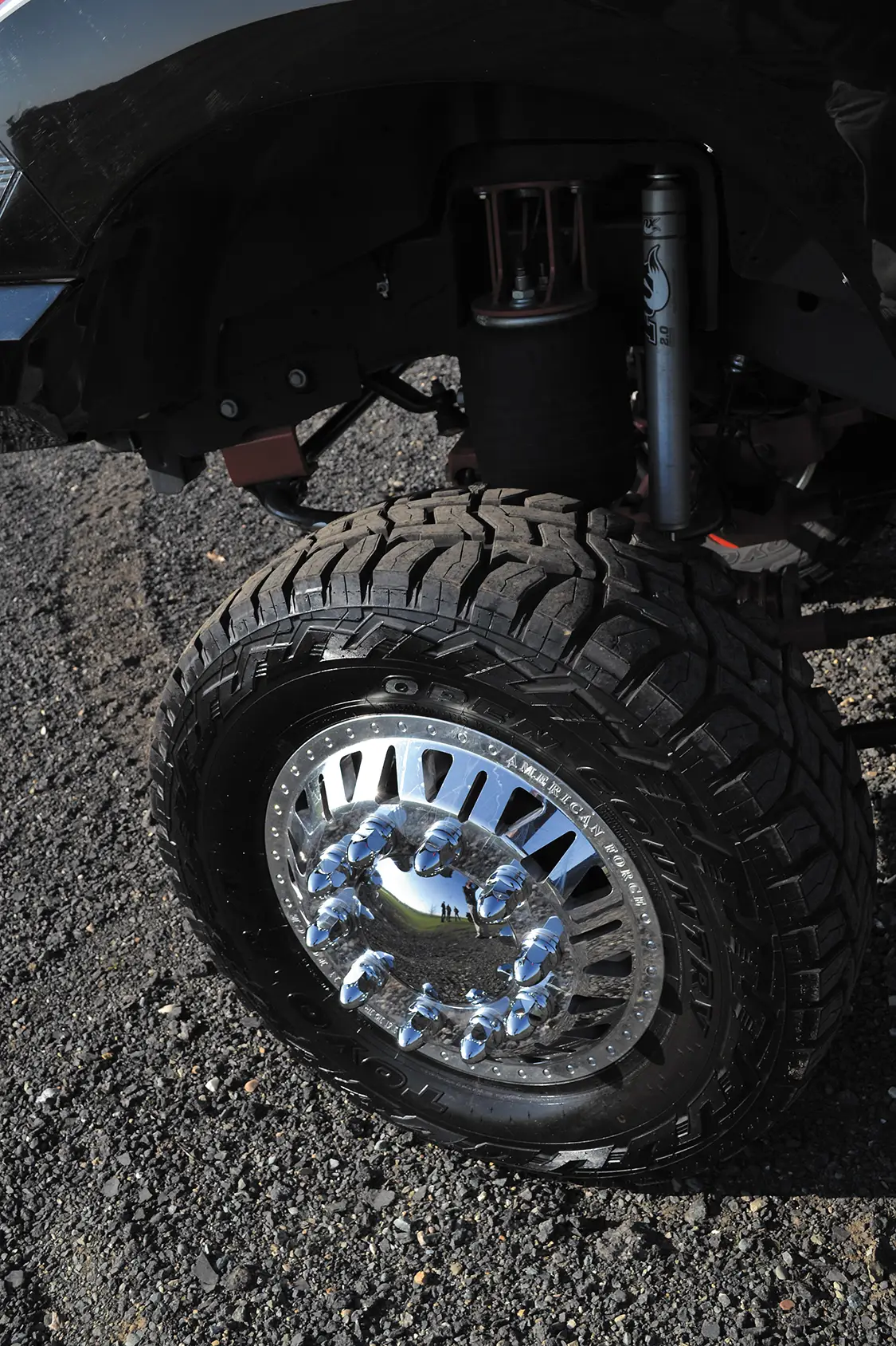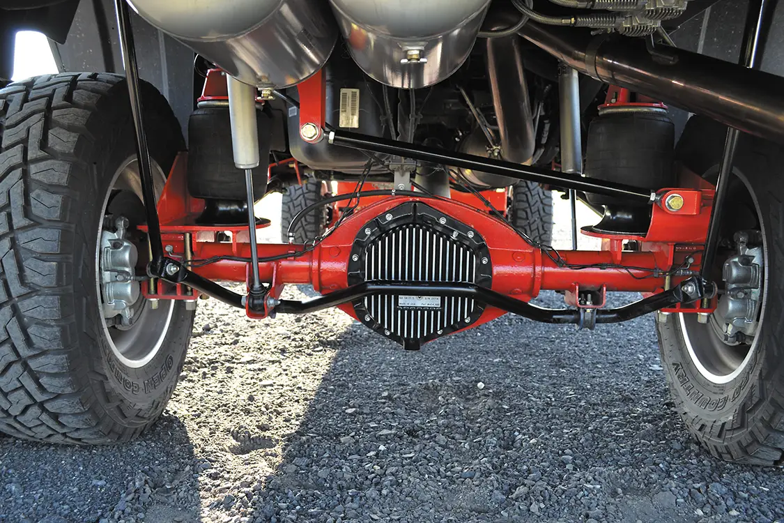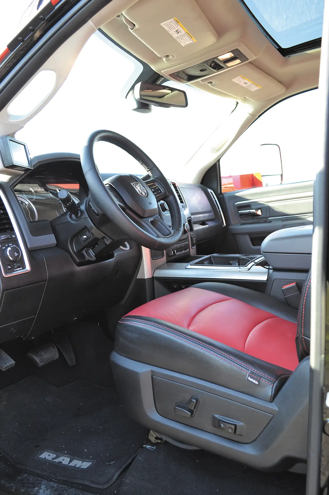 Up next Master Shredder! A 2,168-HP Monster Cummins Published on October 10, 2025 Author Jason Sands Share article Facebook 0 Twitter 0 Mail 0 This 2014 Ram 3500 Redefines Diesel Luxury Making A Statement With A Sky-High 2014 Ram 3500 In the past few years, diesels have gone from trucks mainly used as tow rigs to vehicles that have no problem doing it all. To showcase the do-everything nature of today’s trucks, Jesse Angeles— the owner of Ultra Truck Works of Sacramento, California—built this awesome 2014 Ram 3500. The Ram has virtually every upgrade imaginable, all while keeping the diesel powertrain’s legendary reliability. The 2014 Ram comes with a very capable 6.7L Cummins from the factory, that’s rated at 385 hp and 850 lb-ft of torque. The engine in this case is mated to a 68RFE six- speed transmission, which has been upgraded with a Mag-Hytec transmission pan. For starters, the truck’s stance has been radically altered; thanks to a Kelderman 8-10 inch adjustable lift kit, which uses an air suspension system to adjust ride height from 8 to 10 inches of lift, although it can be run as high as 14 inches. The extra height is also needed to clear another very noticeable modification— the 20-inch, 10-lug conversion American Force wheels—which give the truck a big rig-type of feel. Finally, the rubber that sets the Ram high above city traffic are six 37-inch Toyo tires, which were selected for both looks and ride quality.Subscribe Our Weekly Newsletter Extra power is available when needed via an Edge CTS monitor, with Juice with Attitude programming. Adding an additional 80 hp and 200 lb-ft of torque, total power is boosted to 465 hp and 1,050 lb-ft. The CTS is also used as a second set of gauges, to keep an eye on the big Cummins. DRIVETRAIN The 6.7L Cummins engine is internally just as it came from the factory, although an Edge Juice with Attitude and CTS monitor were installed to give the truck an 80-hp and 200 lb-ft boost when needed. The only other modifications to the truck’s engine and transmission systems are a Mag-Hytec transmission pan that was installed to keep the transmission fluid cool, and an RBP exhaust for added flow and a healthier note. The Kleinn train horns are quite a blast, trust us. The Ram has a multiple trumpet setup that’s been in- stalled right along the passenger’s side of the truck, right next to the frame. The road meets the rubber on a set of 37×12.50R20 Toyo Open Country R/T tires, which are mounted on ultra-trick American Force Racing 20-inch 10-lug conversion wheels. IT’S ALL ABOUT THE DETAILS Even after these basic modifications, Jesse still felt that he was barely scratching the surface of what this type of build could be, so he and his team went back to work. Next up was a custom red, gray and black paint job with pinstriping, which sets the truck apart from the crowd. Extensive red powder coating was also added to the axles and suspension components to match the custom paint. Road Armor bumpers were also installed fore and aft, along with an RBP grille, and extensive external lighting from both Rigid Industries and Spyder Auto. A DPF-back side-exit RBP exhaust provides better flow than stock, along with a deeper tone. Instead of a chrome tip, Jesse accented the black lower part of the truck with this black RBP exhaust tip. In case the truck ever needs to get anyone else out of trouble, a Superwinch was also installed up inside the front bumper. Last but not least, the crew went to work on the interior. Custom Katzkin leather seats were installed in the truck, in a color scheme that matched the outside paint. The stock horn was even replaced with a Kleinn Demon train horn kit that lets everyone know the truck is coming. Since Jesse knew he’d be spending a lot of time be- hind the wheel of the Ram, the interior was also modified. A custom Katzkin leather interior that’s black, gray and tan was installed in the truck for maximum comfort and looks. Up front, a Road Armor front bumper adds protec- tion to anything the truck should encounter, while an integrated Superwinch allows the Ram to pull virtually anything out of trouble. SEMA DEBUT To show off their handiwork, the Ultra Truck Works team took the Ram to the Specialty Equipment Marketing Association (SEMA) show, where it was displayed out near the front hall. Since the Ram retains its factory engine and transmission, the team reported that it ran and drove flawlessly. With a high-in-the-sky stance, air suspension, custom paint, a tuned-up Cummins, and a fully powder-coated suspension, this Ram proves that you can have looks, performance and reliability, all in one show-stopping ride. DW Since an occasional trip to the sand dunes or elsewhere off-road is a definite possibility, extra lighting was added throughout the truck, including this 54-inch Rigid Industries light bar. We’ve talked about the air suspension throughout the article, but not much about its supporting cast. Twin 5-gallon air tanks along with four Viair compressors provide the pressure needed to raise or lower the truck, or blast the train horns. Total 0 Shares Share 0 Tweet 0 Pin it 0 Share 0