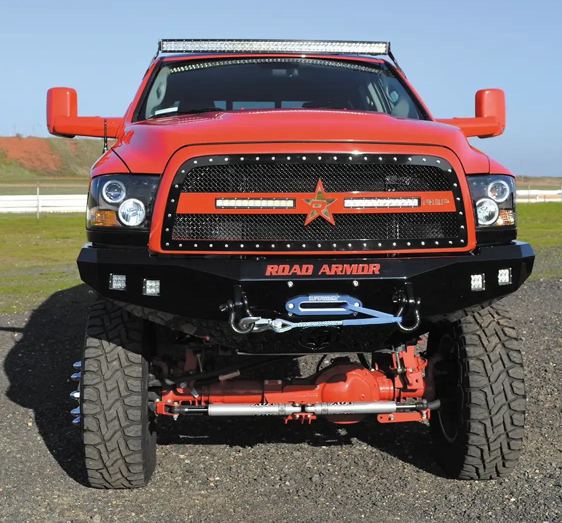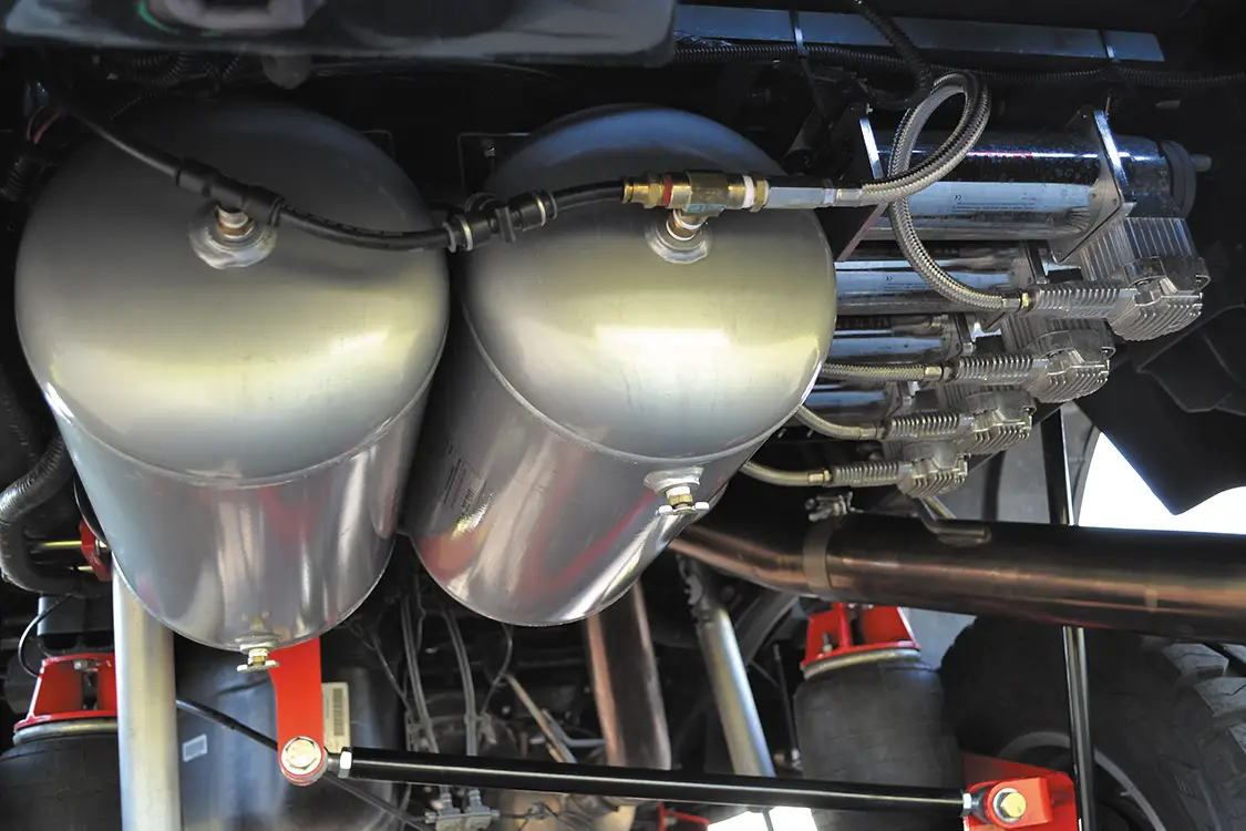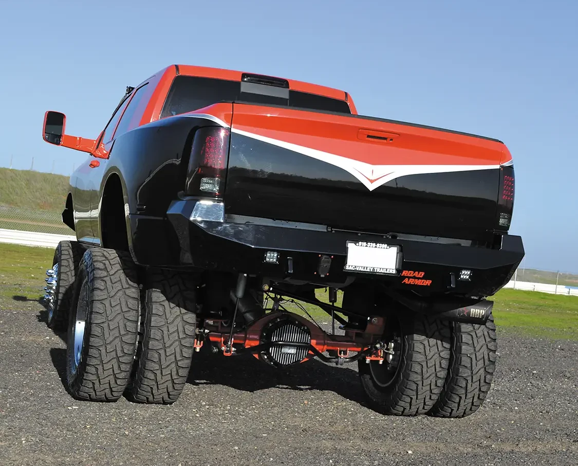 Up next Master Shredder! A 2,168-HP Monster Cummins Published on October 10, 2025 Author Jason Sands Share article Facebook 0 Twitter 0 Mail 0 This 2014 Ram 3500 Redefines Diesel Luxury Making A Statement With A Sky-High 2014 Ram 3500 In the past few years, diesels have gone from trucks mainly used as tow rigs to vehicles that have no problem doing it all. To showcase the do-everything nature of today’s trucks, Jesse Angeles— the owner of Ultra Truck Works of Sacramento, California—built this awesome 2014 Ram 3500. The Ram has virtually every upgrade imaginable, all while keeping the diesel powertrain’s legendary reliability. The 2014 Ram comes with a very capable 6.7L Cummins from the factory, that’s rated at 385 hp and 850 lb-ft of torque. The engine in this case is mated to a 68RFE six- speed transmission, which has been upgraded with a Mag-Hytec transmission pan. For starters, the truck’s stance has been radically altered; thanks to a Kelderman 8-10 inch adjustable lift kit, which uses an air suspension system to adjust ride height from 8 to 10 inches of lift, although it can be run as high as 14 inches. The extra height is also needed to clear another very noticeable modification— the 20-inch, 10-lug conversion American Force wheels—which give the truck a big rig-type of feel. Finally, the rubber that sets the Ram high above city traffic are six 37-inch Toyo tires, which were selected for both looks and ride quality.Subscribe Our Weekly Newsletter Extra power is available when needed via an Edge CTS monitor, with Juice with Attitude programming. Adding an additional 80 hp and 200 lb-ft of torque, total power is boosted to 465 hp and 1,050 lb-ft. The CTS is also used as a second set of gauges, to keep an eye on the big Cummins. DRIVETRAIN The 6.7L Cummins engine is internally just as it came from the factory, although an Edge Juice with Attitude and CTS monitor were installed to give the truck an 80-hp and 200 lb-ft boost when needed. The only other modifications to the truck’s engine and transmission systems are a Mag-Hytec transmission pan that was installed to keep the transmission fluid cool, and an RBP exhaust for added flow and a healthier note. The Kleinn train horns are quite a blast, trust us. The Ram has a multiple trumpet setup that’s been in- stalled right along the passenger’s side of the truck, right next to the frame. The road meets the rubber on a set of 37×12.50R20 Toyo Open Country R/T tires, which are mounted on ultra-trick American Force Racing 20-inch 10-lug conversion wheels. IT’S ALL ABOUT THE DETAILS Even after these basic modifications, Jesse still felt that he was barely scratching the surface of what this type of build could be, so he and his team went back to work. Next up was a custom red, gray and black paint job with pinstriping, which sets the truck apart from the crowd. Extensive red powder coating was also added to the axles and suspension components to match the custom paint. Road Armor bumpers were also installed fore and aft, along with an RBP grille, and extensive external lighting from both Rigid Industries and Spyder Auto. A DPF-back side-exit RBP exhaust provides better flow than stock, along with a deeper tone. Instead of a chrome tip, Jesse accented the black lower part of the truck with this black RBP exhaust tip. In case the truck ever needs to get anyone else out of trouble, a Superwinch was also installed up inside the front bumper. Last but not least, the crew went to work on the interior. Custom Katzkin leather seats were installed in the truck, in a color scheme that matched the outside paint. The stock horn was even replaced with a Kleinn Demon train horn kit that lets everyone know the truck is coming. Since Jesse knew he’d be spending a lot of time be- hind the wheel of the Ram, the interior was also modified. A custom Katzkin leather interior that’s black, gray and tan was installed in the truck for maximum comfort and looks. Up front, a Road Armor front bumper adds protec- tion to anything the truck should encounter, while an integrated Superwinch allows the Ram to pull virtually anything out of trouble. SEMA DEBUT To show off their handiwork, the Ultra Truck Works team took the Ram to the Specialty Equipment Marketing Association (SEMA) show, where it was displayed out near the front hall. Since the Ram retains its factory engine and transmission, the team reported that it ran and drove flawlessly. With a high-in-the-sky stance, air suspension, custom paint, a tuned-up Cummins, and a fully powder-coated suspension, this Ram proves that you can have looks, performance and reliability, all in one show-stopping ride. DW Since an occasional trip to the sand dunes or elsewhere off-road is a definite possibility, extra lighting was added throughout the truck, including this 54-inch Rigid Industries light bar. We’ve talked about the air suspension throughout the article, but not much about its supporting cast. Twin 5-gallon air tanks along with four Viair compressors provide the pressure needed to raise or lower the truck, or blast the train horns. Total 0 Shares Share 0 Tweet 0 Pin it 0 Share 0