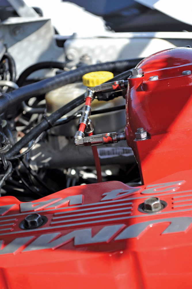Up next SEMA Showstopper: Joey Gaynor’s Custom 2013 RAM 2500 Published on September 18, 2024 Author Jason Sands Tags Cummins, Diesel, diesel performance, diesel power, Dodge, Ram, Share article Facebook 0 Twitter 0 Mail 0 Casey Dixon’s 750-HP 1999 Dodge Ram: A VP44 Powerhouse For years, 12-valve Dodges built between 1994 and 1998 have enjoyed a healthy following in the aftermarket, as have ’03 and up common-rail trucks. Stuck in the middle (‘98.5-’02) are the VP44 rotary-pumped Dodges, which are both fuel and rpm limited. Still, there are a brave few who take the road less traveled, and build these underrated rigs, like Casey Dixon of Hollister, California. With the help of his Dad Doug, who owns Compulsive Motorsports, Casey put together a simple single turbo combination that can run with the best of them, no matter what year his competition may be. Backwards Thinking Even though Casey’s ’99 Dodge is extremely clean, the engine still had more than 200,000 miles on it, so Casey went with the extra insurance of installing ARP head studs, to prevent any head gasket issues on the high mileage engine. Casey want’ done upgrading the 5.9L Cummins short block: While the engine was part, he also installed a hot street camshaft from Hamilton Cams, along with the company’s HD pushrods and 103-pound valvesprings. Not only does Casey’s engine produce an estimated 750 rear-wheel horsepower, it’s virtually immaculate. It also has a bit more color than we’re used to seeing, which was a nice surprise when he popped the hood. A single 67.7mm turbocharger from BorgWarner is responsible for making more than 60 psi of boost. Exhaust exits via an HX40-style 4-inch downpipe, which connects to a 5-inch MBRP exhaust. Subscribe Our Weekly Newsletter When it comes to making power, many VP44 enthusiasts will just put as many boxes and programmers on the engine as they can, and crank them all the way up. This usually creates a smoky mess of a truck, which has both way too much timing and duration to run right. Casey however, had a different approach. He decided to leave the electronics alone, using an Edge only so the truck wouldn’t throw a boost code. To bump up the fuel side of things, Casey replaced the stock injectors with some “big” race injectors from Scheid Diesel. Scheid also provided one of their competition VP44 pumps, and 0.093-inch injection lines. Induction Duties From the intake, to the turbocharger, to the exhaust, everything in the airflow path on Casey’s engine has been either massaged or replaced. The intake is a large universal oiled unit from AFE, which uses a 45-degree boot to feed a 67.7mm S400 turbocharger with a polished cover. The turbo is connected to the engine via a Stainless Diesel exhaust manifold, and air is expelled with a simple HX40-style 4-inch downpipe. Air on the compressor side is forced through a stock intercooler, before it enters a high-flowing Banks Monster-Ram, and then into the engine. Casey was unsure of how much boost the combination pushes, as he can currently peg his 60 psi boost gauge. Casey was pretty tight-lipped about injector specs, but he did share that the Scheid-built sticks were much, much bigger than stock. A set of oversize 0.093-inch lines rounds out the combination. A 165 gallon-per-hour lift pump supports the 5.9L Cummins. Mounted low along the frame, the aftermarket lift pump was needed to support the rest of the Dodge’s hopped-up injection system. A set of 3.73 gears help keep the Dodge in its powerband at the track. Bilstein shocks help with dampening on both the track and the street. A large oiled universal AFE air filter was incorporated into the build, which flows more than enough air to support the hungry BorgWarner turbocharger. In addition to the intake and exhaust upgrades, airflow into the engine has been improved as well, with the addition of a Banks Monster-Ram intake horn. Although it might look like a normal VP44 pump, the Scheid Diesel-built VP44 flows a much greater amount of fuel than a stock unit. While the factory VP44’s are limited to around 600 rwhp (without nitrous) the Scheid pump makes close to 750 rwhp based upon trap speed. Keeping It On The Road With enough air and fuel to make an estimated 750 rear-wheel horsepower, the rest of the Ram’s drivetrain needed a few upgrades as well. Since Casey was looking to drag race regularly, his transmission received the full treatment, and was completely rebuilt by Brown’s Diesel in Riverdale, California. Brown’s upgraded all three shafts (input, intermediate, and output) with aftermarket units, added a Goerend valvebody, and a special high-stall triple-disc converter to match the turbocharger. The suspension and steering was also upgraded, as “death wobble” at 120 mph wasn’t on the menu. Up front, a BD track bar and steering box stabilizer keeps everything solid, while CCP traction bars in the back help plant the rearend. “Casey’s best quarter-mile time has been 11.72 seconds at a blazing 118 mph” At the time we went to press, Casey’s best quarter-mile time has been 11.72 seconds at a blazing 118 mph, on a pass where he unfortunately grenaded his 67.7mm turbo. Not one to be deterred from going faster, he’s already looking at a ported head from Scheid Diesel, an intercooler, and an upgraded turbo setup. While the VP44 platform may be the Black Sheep of the Dodge world, what Casey has done with his ’99 has set him firmly apart (and ahead of) the rest of the rotary pump pack. DW Right before we shot the Dodge, Casey installed a Snow Performance water-methanol kit to try and calm down the truck’s 1,700 degree exhaust gas temperatures. Unfortunately, he didn’t get much time to play with it before the truck’s turbo checked out. For reliability reasons, the stock exhaust manifold was replaced with this unit from Stainless Diesel, which is not only stronger, but flows more than the factory version. With more than triple the factory 
