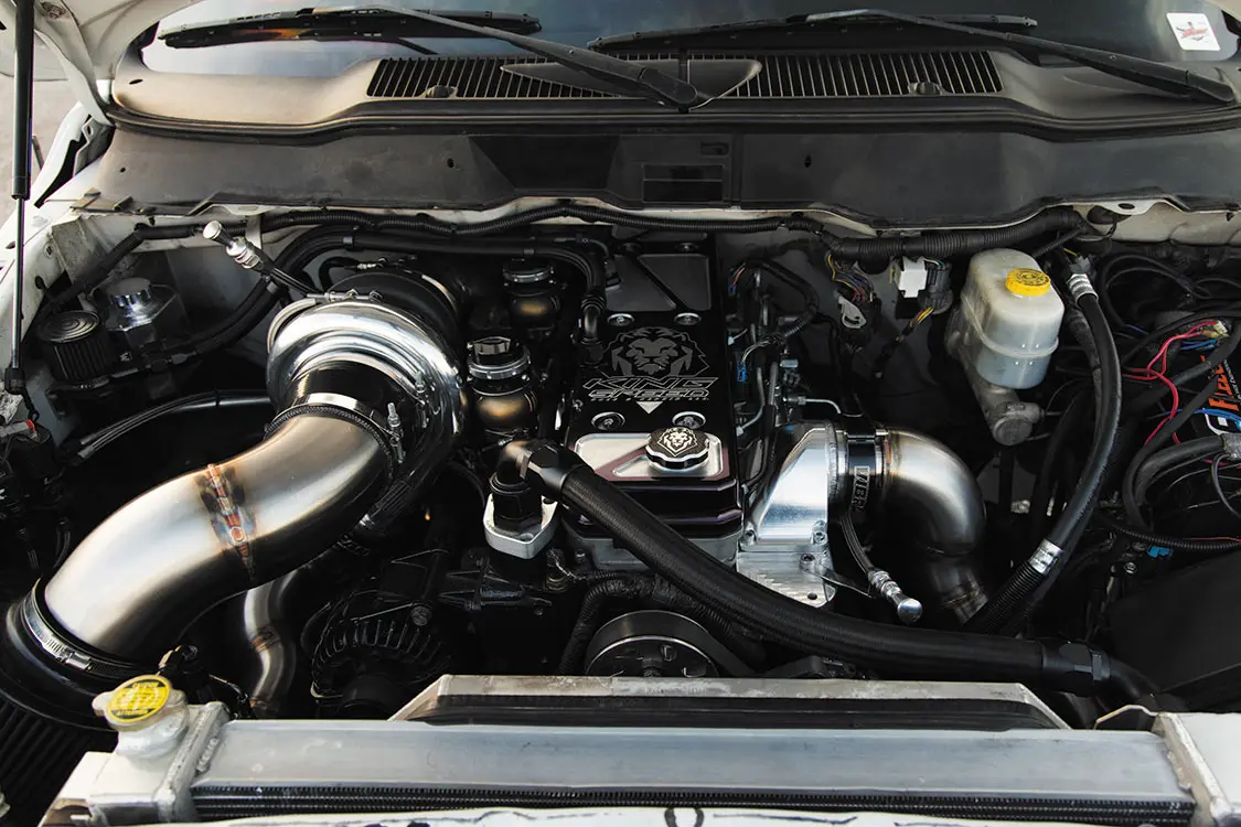 Up next A Well-Preserved, 620,000-Mile First-Gen: Tyler Turay’s Pristine ’93 D250 Cummins Published on January 29, 2025 Author LINDSEY FISHER Tags 2006 Dodge Ram 2500, Share article Facebook 0 Twitter 0 Mail 0 2,000HP Factory-Looking Beast: The Story of a Record-Setting Ram 2500″ A ‘Factory’ ’06 Ram 2500 that Stands Out and Competes Photos by Mach1Media We know what you’re thinking—while it may be a very clean looking 2006 Dodge Ram 2500, since when does Diesel World feature stock-ish trucks? Well, we don’t; and despite appearances, this beautiful Ram, owned by Daniel Hargrove, is anything but stock. In fact, as “factory” as it may seem, this truck not only competes, but also stands out at Outlaw Diesel Super Series and Ultimate Callout Challenge events, not to mention puts up some seriously steep competition at local dyno events. Subscribe Our Weekly Newsletter Haling from Charlotte, Tennessee, Daniel works as a diesel mechanic, giving him the ultimate platform to know the ins and outs of diesel performance. And what better way to show your prowess and passion in the diesel world than to build the ultimate street and strip sleeper? With the help of a number of diesel-pro buddies, Hargrove was able to put this rendition of his truck together in just 6 months, but the build has been a never-ending project. “I purchased the truck in 2017 – bone-stock, one-owner, old-man truck,” Daniel told us. “Within a month, it had a Comp 48RE, 200 percent-over S&S injectors, a dual-pump kit, and made 900hp. I drove and raced the truck like that for four years and had a blast.” Now, 900hp may sound like the tip-top of performance for some, but after four years of competing below the 1K threshold, Daniel opted to elevate the truck’s game considerably. The Ultimate Build Putting massive amounts of power to the pavement is the first objective of any competitive diesel, and Daniel accomplished this for his truck starting with a swapped 6.7L Cummins inline-six. On top of that sits a large single S485 turbo from Stainless Diesel pro Johnny Gilbert. Adding even more performance to the Cummins are a Hamilton Cams 178/208 camshaft, fully ported Wagler Competition Products big-valve cylinder head, ARP 625 head studs, a Kingspeed LLC intake manifold, and a full S&S Diesel fuel injection system with 450 percent-over fuel injectors and a 14mm CP3 pump. The bottom-end was upgraded with Wagler connecting rods, Mhale Motorsports coated and cast pistons, Total Seal rings, and a 12mm girdle and main studs. The exhaust system for the inline-six was also upgraded, making use of a Stainless Diesel exhaust manifold, custom V-banded 5-inch exhaust piping, and a 5-inch downpipe exiting under the truck. While Daniel played a pivotal role in choosing every component that went into the engine build, it was Jeff McCord of Linco Diesel Performance who was entrusted with the ultimate build of the diesel. Backing the built engine is a Dodge 48RE transmission with a Suncoast billet triple-disc torque converter equipped with a 2600 stall, Sonnax 35-spline input shaft, Sonnax billet intermediate shaft, and a Sonnax billet fat output shaft, all compliments of Logan Epling of Epling Motorsports. When it came to the transfer case, the Dodge’s stock 271 T-case was utilized and tied to large front and rear driveshafts, compliments of Derek Rose of DNR Customs. Both front and rear axles are fitted with 3.73 gears, while braking power comes from second-generation Ram brakes due to size restrictions related to the truck’s competition wheel and tire combination. The goal of the build was to get somewhere in the area of 1,200 to 1,300 horsepower on straight fuel, with a three-stage nitrous system utilizing a Nitrous Express Maximizer 5 progressive controller, 375 solenoid and two .99 jets, pushing the diesel to an impressive 1,700 to 1,800hp. The results, however, were a bit grander than Daniel and his team thought they would be, with the truck putting down over 1,400hp on straight fuel, and just over 2,000hp on nitrous. A Strong Foundation Now you can’t build a highly competitive diesel without also upgrading the chassis and suspension system, so Daniel entrusted Keaton Samples of Samples Performance Fabrication to upgrade the truck’s undercarriage. In addition to modifications to the rear section of the frame, Keaton equipped the Ram with Firepunk lowering coils and Bilstein 5125 shocks in the front, while modifying the truck’s factory leaf springs in the rear to make use of just two leafs in each pack, and adding Afco coilovers with 200-pound springs to the mix. The whole chassis sits atop 22×12-inch Forgiato Ventaglio wheels wrapped in Toyo Proxes 305/40/R22 rubber. Street and Strip When it comes to body and interior modifications to the truck, Daniel opted to do very little, wanting to keep his truck as versatile as possible. Outside, the truck maintains its original white paint, chrome trim, badges and bed. Inside, the truck maintains a similar factory look, right down to the standard heated leather seats, intact heating and air conditioning system, and even a functioning back seat thanks to the singular interior addition – a full rollcage built by Paul Cato of Maverick Diesel, which has removable tubing in the rear section. As Daniel told us, he may not be taking it to the hardware store to get a load of 2x4s, but he likes the idea that if he needed to, he still could in this truck. Plus, it’s extra comfortable to take on a drive-to-drag trip, which Daniel hopes to do in the near future. A Never-Ending Project Remember when we said that Daniel’s truck had been a never-ending project right from the start? Well, that continues to be so today. As of December 2023, the truck was once again torn down and in the midst of another full rebuild in order for it to be more competitive in the 2024 Ultimate Callout Challenge season. Among the upgrades for the new version of the ‘06 Ram 2500 are a deck