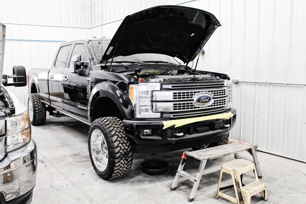 Up next Project (OBS)essed: Buckboard Delete Published on June 09, 2020 Author Mike McGlothlin Tags Air Intake, Diesel, diesel engine, Diesel Exhaust, Diesel Truck, ford, Ford Diesel, Ford Motor Company, injectors, Motorcraft, power stroke, Power Stroke Diesel, toyo tires, turbo, Turbocharged, Turbodiesel, Share article Facebook 0 Twitter 0 Mail 0 ON THE BRINK, PART 1 PUSHING A STOCK BOTTOM END 6.7L POWER STROKE BEYOND 800-RWHP We’re on dangerous ground. We’ve crossed paths with the owner of a bone-stock, 5,000-mile ’17 Super Duty Platinum who’s not afraid to slip the trans, bend a few rods, or even window the block. It’s right where we like to be: on the edge and pushing the limits. While there are some definite do’s and don’ts associated with all ’11-‘19 6.7L Power Strokes, the definitive red line on horsepower is yet to be drawn— especially with the newest engines. With bigger wrist pins introduced in ‘15 and then larger rods infiltrating the 6.7L V-8’s crankcase in Job 2 ’17 versions, the end-all, be-all amount of power one of them (and which one of them) can take is hard to know for sure. Some have shelled between 650 and 700-rwhp, and some have hung in there at nearly 750-rwhp. Although we don’t plan to scatter the 6.7L Power Stroke in our guinea pig, we do plan to push the truck past the 800-rwhp mark with as few upgrades as possible. Helping us reach our fueling goals, Exergy Performance supplied one of its 10mm CP4.2 high-pressure fuel pumps and a set of 60-percent over injectors. With Exergy’s stroker CP4.2 being capable of supporting 800-rwhp and its 60- percent injectors capable of supporting well north of that, it will be interesting to see what kind of fuel-only numbers we can squeeze through this alumi-duty. If the 6R140 plays ball and we meet our horsepower goal on fuel, we may plumb in some giggle gas and try to squeeze a four-digit figure through the factory automatic. Think we can do it? We’ve been told it’s not possible—so now we have to at least try… Stay tuned for Part 2. This project is bound to either produce an impressive dyno graph or a few fireworks.Subscribe Our Weekly Newsletter Barely out of its first oil change, our 5,800-mile test-mule is about as fresh as it gets. The ’17 F-350 Platinum certainly looks the part, thanks to a 3.5-inch lift from ReadyLift and 35-inch Toyo Open Country M/T’s mounted on 22×12 Fuel Forged FF19 wheels, but now it’s time to match its appearance with some serious firepower. Will the 6.7L Power Stroke survive the 100-percent increase in horsepower and torque it’s about to see? Graced with a cam that provides 10mm of stroke, Exergy Performance’s upgraded CP4.2 for the 6.7L Power Stroke flows over 30-percent more fuel than the factory ’17 Bosch CP4.2 pump can. The added displacement of the Exergy stroker pump facilitates its ability to support up to 800-rwhp. It retails $2,300 and requires no core, which makes it an affordable, bolt-on upgrade for the enthusiast looking to pair it with a mild injector nozzle upgrade. While Exergy’s stroker CP4.2 is rated to support up to 800-rwhp, the company’s 60-percent over injectors can support much more. Needless to say, it will be interesting to see what kind of fuel-only numbers we can squeeze through our F-350. If the 6R140 will hold, we don’t think 850 to 900-rwhp is out of the question. Following a baseline and function test on the low-mile injectors we sent to Exergy, they got to work cleaning and prepping them for modification. After that, abrasive flow machining was employed to make each nozzle’s overall flow 60-percent higher than stock. Along with the work performed on the nozzle, the Piezo actuator and select other internals were modified within each injector body. Retail for a set of Exergy’s 60-percent over injectors is $4,315.60. Proven and validated, every set of injectors Exergy builds comes with a detailed flow sheet displaying the calibration results. In the case of our 60-percent over injectors, their output was balanced to within 4-percent of one another. In a max effort scenario, each injector is capable of flowing approximately 320 mm3 at 2,000 microseconds of duration and 180 Mpa (26,100 psi) of rail pressure. As each factory injector came out of its respective head, it was labeled according to the cylinder number it resided above. This important tracking measure was necessary because without taking it we would’ve had to change the IQA (Injector Quality Adjustment) codes once the injectors were sent back to us. Altering IQA codes can only be done by reprogramming the PCM. To label each unit, we simply engraved its number at the top of the body. Though accessing the injectors and CP4.2 on a 6.7L Power Stroke is quite involved, everything on our 5,800-mile Super Duty came apart without a fight. Once the factory air intake, intercooler piping, and upper and lower intake plenums were out of the way, the injectors, high-pressure fuel lines, and pump were removed relatively quickly. When the Exergy stroker pump arrived, we set to work removing the factory CP4.2. The process required removal of the fan shroud and fan, followed by the serpentine belt and even the belt tensioner. Gaining adequate room to access the pump’s drive gear nut also required that the fan hub assembly be pulled. After that, the vacuum pump was removed from the engine and set aside, and the CP4.2 drive gear nut was broken free. On the 6.7L Power Stroke, the CP4.2 is timed to both the crankshaft and camshaft, and its drive gear is directly driven by the camshaft gear. To keep the pump in perfect time, the timing mark on the cam gear must sit between the two timing reference marks present on the pump’s drive gear. With the CP4.2’s drive gear removed, the pump’s three mounting nuts were broken loose. Then the factory CP4.2 was finagled free from the front cover, maneuvered off of its respective mounting studs, and hoisted out of the valley. 