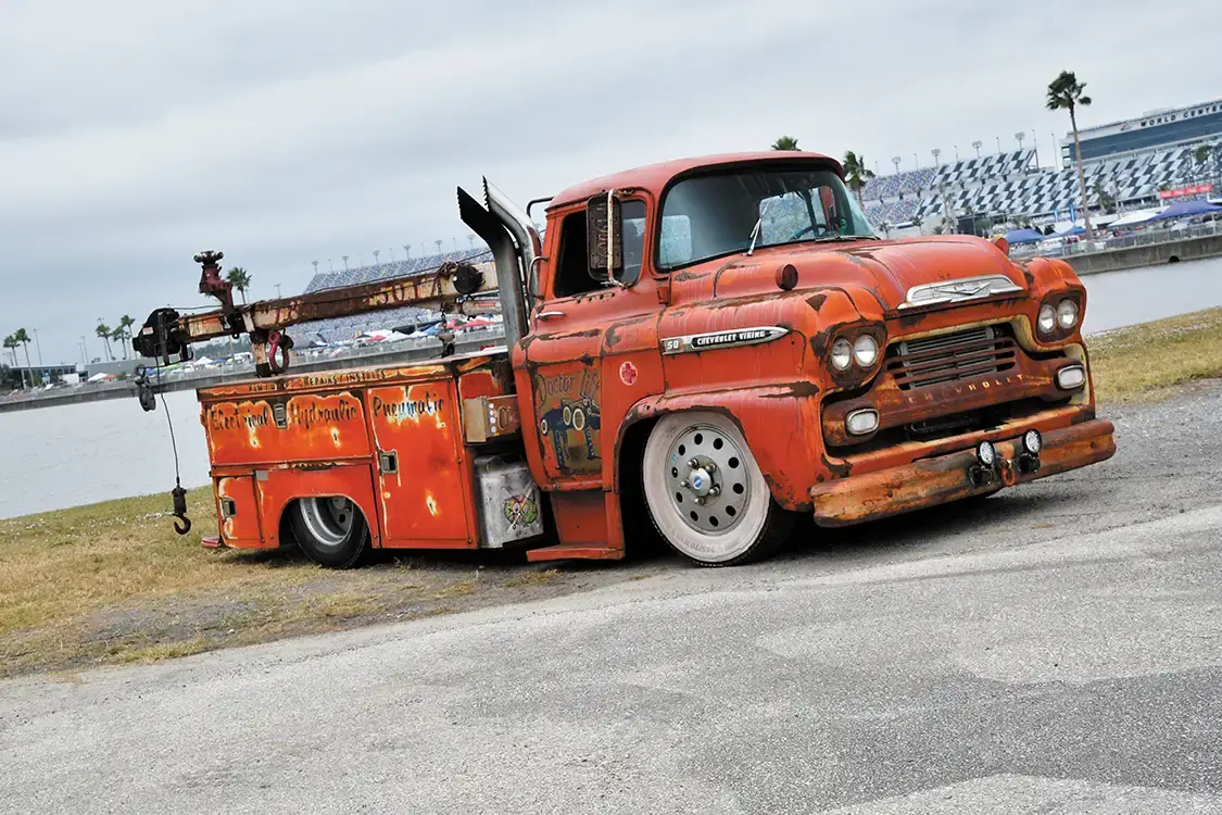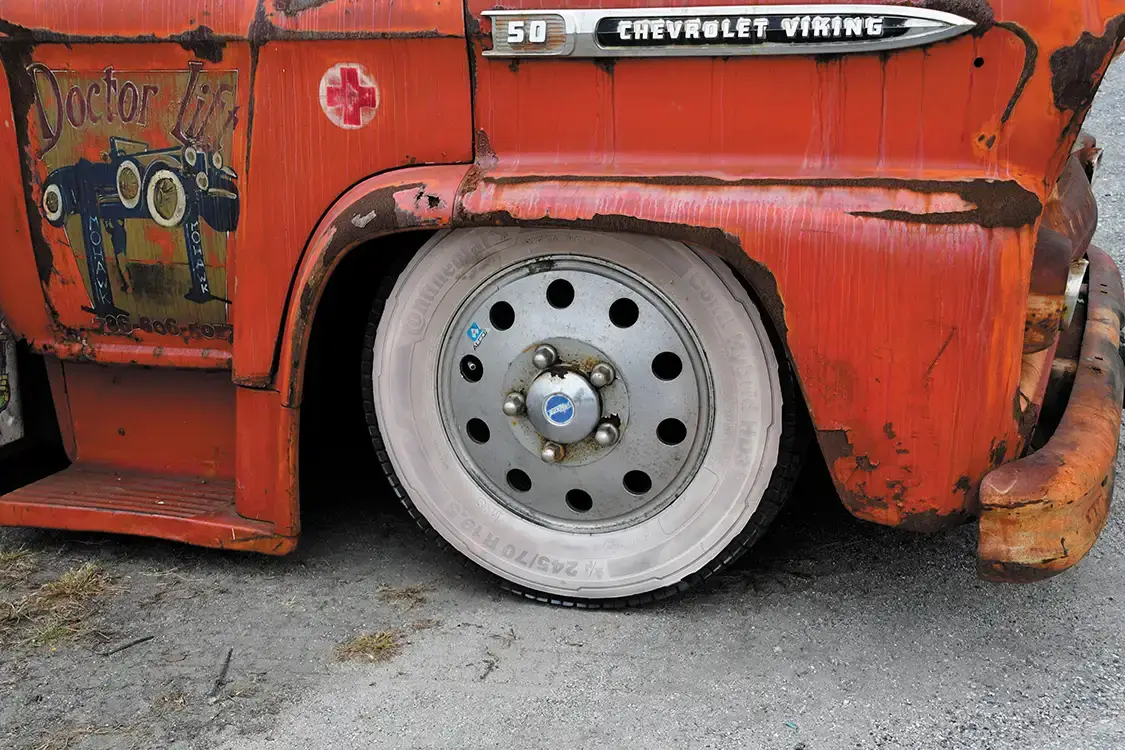 Up next Turning Up the Bass: Audio Upgrades for Truck Enthusiasts Published on November 07, 2025 Author JOE GREEVES Share article Facebook 0 Twitter 0 Mail 0 1959 Chevy Duramax Diesel-Powered Rat Rod Workhorse A Rat Rod Work Truck Built to Get the Job Done Lots of folks build rat rods as an exercise in creativity. Completed projects are generally a collection of found parts that are assembled in a way that showcases the builder’s imagination. The end result is a one-of-a-kind showpiece where comfort and function are rarely the primary concern. Instead, fascination is the goal. The wrecker you see in these photos has a familiar patina appearance and sports occasional areas of rust so, on the surface, you might decide that this is just simply another rat rod showpiece with a collection of unusual accessories tacked on. In fact, nothing could be further from the case. Etian Montalvo from Cutler Bay, Florida has been an active auto mechanic for the last two decades. In fact, he got started early, cleaning parts in a mechanic’s shop at the ripe old age of 10. Currently, he is known as Dr. Lift, specializing in hydraulic lifts for mechanic shops, car dealerships, and even some custom homes. Etian has owned several trucks over the years that played a role in his business. Unfortunately, he never had the right tools and equipment in one place to get the job done. That was the rationale behind creating this one-off wrecker. It’s fully functional and on the road every day as his ultimate work vehicle. Equipped with air conditioning, power steering, and stereo, the truck is a joy to drive and more importantly, has everything Etian needs to get through any given workday.Subscribe Our Weekly Newsletter The origins of the truck are as unique as the truck itself. Etian and his wife Tiffany took their daughter to a farm in Homestead, Florida so that young Mia could ride on a pony. Parked on a side road of the farm was a truck very similar to the one he has now, and it made him think. The distinctive styling and the rarity of the old Chevrolet Viking made it the perfect canvas for a modern custom. With that original image in mind, he decided to create one just like it with a blend of old-school style and modern underpinnings, yet carefully tailored to solve those daily work-related challenges. Just three days later, his online search uncovered a suitable project vehicle in Arkansas. A good friend with a car hauler delivered the 1959 medium-duty Chevrolet 50 Series Viking to Florida. This is when Etian’s creativity kicked into overdrive. While everyone agrees that nostalgia is worth preserving, drivers interacting with 60-year-old technology quickly realize that vehicles that were exciting in their day lag far behind their modern counterparts in virtually every category—especially in areas of safety, comfort, and performance. For Etian, that meant making a serious plan was the first step. Once the truck was in his shop, everything on the donor vehicle was removed, exposing the original 2 x 8 rectangular steel chassis. Although the chassis itself was strong enough to get the job done, modernizing the suspension for comfort, handling, and reliability was the first priority. Upgrades began with a front clip from a Chevrolet 3500 Express van, while the rear utilizes semi truck leaf springs to hold the Chevrolet 3500 HD dual rear axle. Although the donor truck arrived with a working 350 V8, Etian had other plans. His preference leaned toward a heaping dose of performance that could only be achieved with a modern diesel. A stock Duramax 6.6L turbo diesel along with an Allison six-speed automatic was sourced from a 2004 Kodiak C5500 found in a Miami salvage yard. Making it all come together, Etian fabricated the custom 6-foot-4-inch driveshaft in his shop, connecting the Allison to the dually rear. Since the cab was still separated from the chassis, the power plant became an easy bolt-in job. The new diesel is essentially stock except that exhaust is now ushered overboard via a huge set of showy dual pipes. Louvers were installed on the tips to disperse some of the black smoke when Etian hits the gas. Next on the want list was an old-school utility truck bed, happily tracked down at a local salvage yard. The heavy steel boxes needed considerable modifications before they could be adapted to the chassis but the effort was worth it. In addition to defining the rear of the vehicle, the cabinets were repurposed to securely hold every tool necessary to accomplish Etian’s everyday tasks. Another thorny problem that had to be solved was moving heavy equipment at the worksite. The new hydraulically operated lift gate fitted to the rear made that job easy. As a styling touch, he found a tailgate with the Chevrolet logo on it and welded it into place. The last big piece of equipment on the list was the crane repurposed from a General Electric truck in a salvage yard. It didn’t work initially but with some careful troubleshooting, Etian says it now functions perfectly. A framework of angle iron and steel plate connects it to the chassis, creating a solid platform. Extending out 20 feet, it can lift more than 8,000 pounds, and has become an essential tool on the job. Once all the functional additions were in place, getting the rig rolling was the next step. Linking the Duramax power to terra firma are grippy 4-ply, 245/70R19.5 Firestone tires wrapped around 19.5-inch Alcoa wheels that Etian had from a former project. While function might have been the first priority, who says work trucks can’t be stylish? The Chevy is bagged using a pair of Viair compressors, Firestone bags, 1\2-inch lines, and twin 10-gallon reserve tanks. At the touch of a button, the truck drops to the ground and shows off its pavement-sucking stance. Since Etian spends his days inside the cab, an appropriate level of plush was next on the list. He added some special touches to the interior beginning with sound deadening on the floorboard
